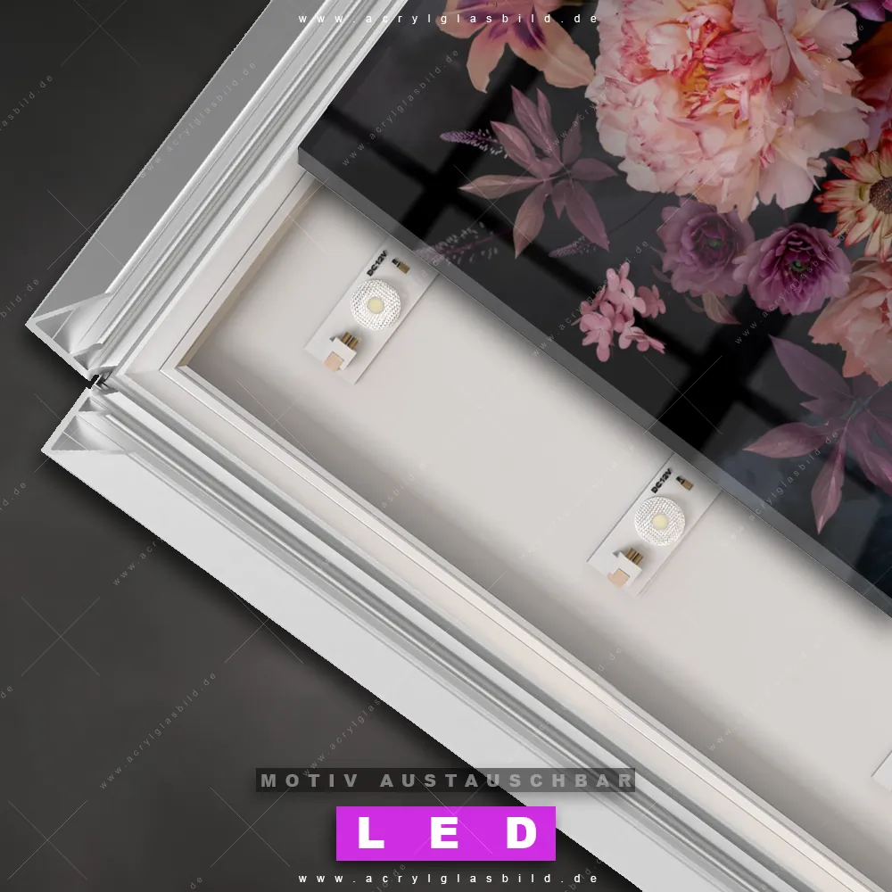 Also, worauf wartest du noch? Gib mit einem beleuchteten Wandbild mit wechselbarer Acrylglas-Scheibe deinen Wänden das gewisse Etwas und bestelle jetzt das LED Acrylglasbild Canvalight® DIA Verschiedene Blüten in Rosatönen – dein Zuhause wird es dir danken und deine Freunde werden dank der wechselbaren Motive erblassen!