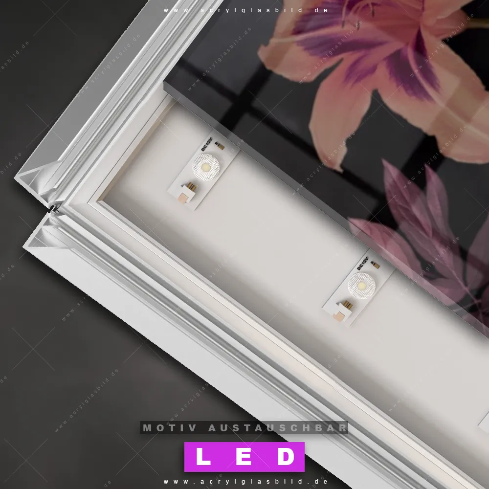 LED Acrylglasbild Canvalight® DIA | Romantische Blumenillustration | Schmal