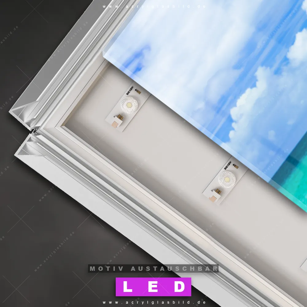 Also, worauf wartest du noch? Verwandle deine Wände mit einem LED Leuchtbild in wahre Kunstwerke und bestelle jetzt das Canvalight® DIA LED Acrylglasbild Romantik aus Blüten und Meer. Deine Wände werden strahlen, und deine Freunde werden dank der wechselbaren Motive staunen!