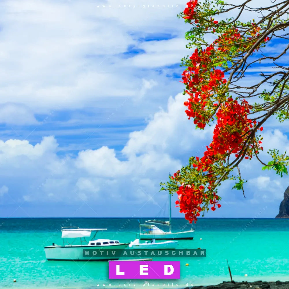 Wer will schon dunkle, triste Wände? Mit unserem LED Acrylglasbild Canvalight® DIA Baumblüte am Meer und seiner fantastischen LED-Ausleuchtung werden deine Wände in Arzt - Praxis, Büro - Kanzlei, Wohnzimmer - Schlafzimmer zu echten Hinguckern. Wenn du auf der Suche nach einem beleuchteten Wandbild aus Acrylglas mit Küste, Sommer, Natur, Blume, Boot, Baum, Felsen, Südsee - Karibik, Urlaub - Reisen bist, dann solltest du unser LED Leuchhtbild Blütenpracht am Wasser mit den beeindruckenden Motiv-Farben Blau, Rot, Türkis nicht verpassen. Gestaltet im angesagten Natürlich - Realistisch Stil, passt das LED Bild mit DIA-Klapprahmen und wechselbarer Acrylglas-Scheibe perfekt zu jedem Einrichtungsstil – selbst in deinem kleinen Dschungel aus Kreativität und Chaos!