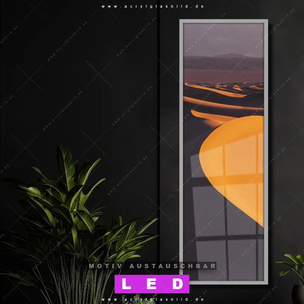 Bist du bereit, deine Wände mit einem dimmbaren LED Bild mit Fernbedienung und optionaler Farbtemperatursteuerung auf das nächste Level zu bringen? Unser Landschaften Canvalight® DIA LED Acrylglasbild ist genau das, was du brauchst! Das Wandbild mit LED Beleuchtung im Schmalen Format mit austauschbarer bedruckter Acrylglas-Scheibe Sanddünen bringt Licht und Stil in dein Zuhause – und das in null Komma nichts!