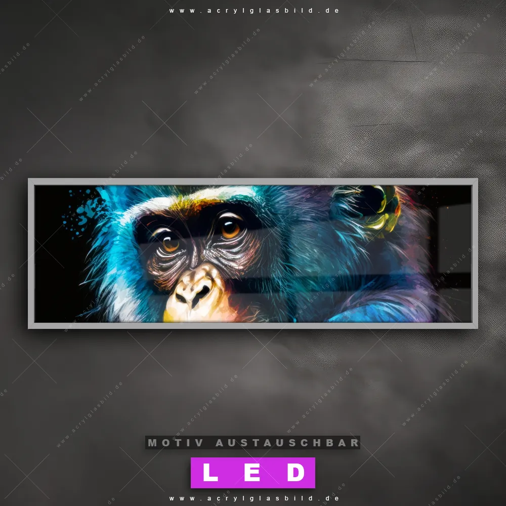 LED Acrylglasbild Canvalight® DIA | Schimpanse in bunten Farben | Panorama