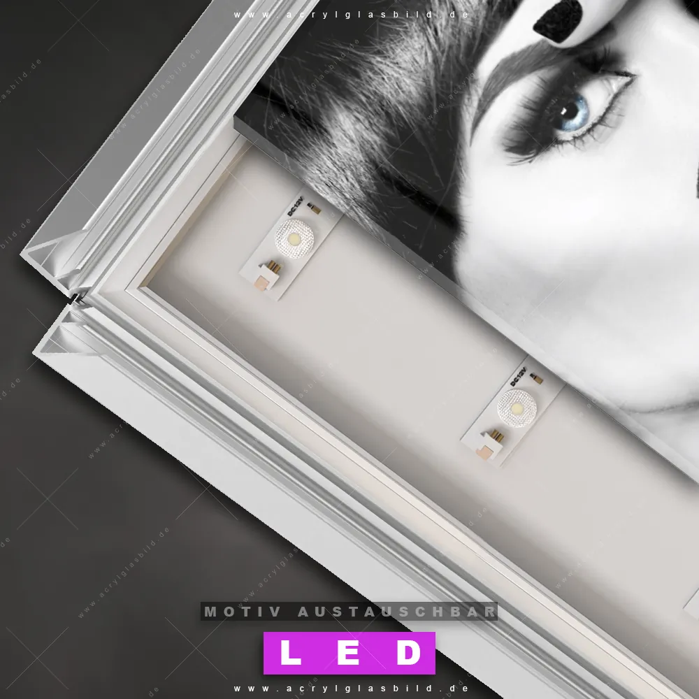 Du suchst nach einem Wandbild mit LED Beleuchtung als ultimativen Hingucker für deine Wände? Dann haben wir das perfekte dimmbare LED Bild mit Fernbedienung und optionaler Farbtemperatursteuerung für dich: unser abgefahrenes Porträts - Menschen Canvalight® DIA LED Acrylglasbild! Mit dem LED Leuchtbild aus Acrylglas Schöne Geheimnisvolle im Hochformat mit austauschbarer bedruckter Acrylglas-Scheibe bringst du nicht nur Licht, sondern auch ordentlich Stil in deine Bude.