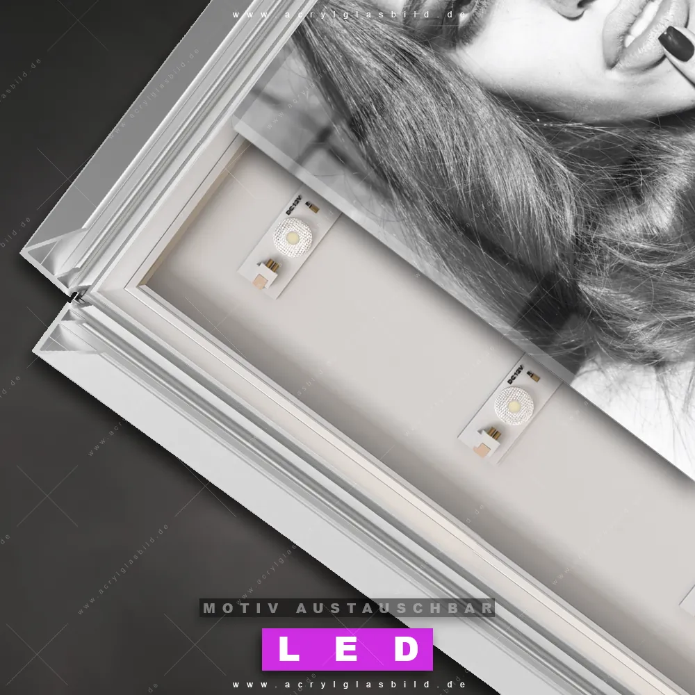 Also, worauf wartest du noch? Gib mit einem beleuchteten Wandbild mit wechselbarer Acrylglas-Scheibe deinen Wänden das gewisse Etwas und bestelle jetzt das LED Acrylglasbild Canvalight® DIA Frau zeigt ihre Meinung – dein Zuhause wird es dir danken und deine Freunde werden dank der wechselbaren Motive erblassen!