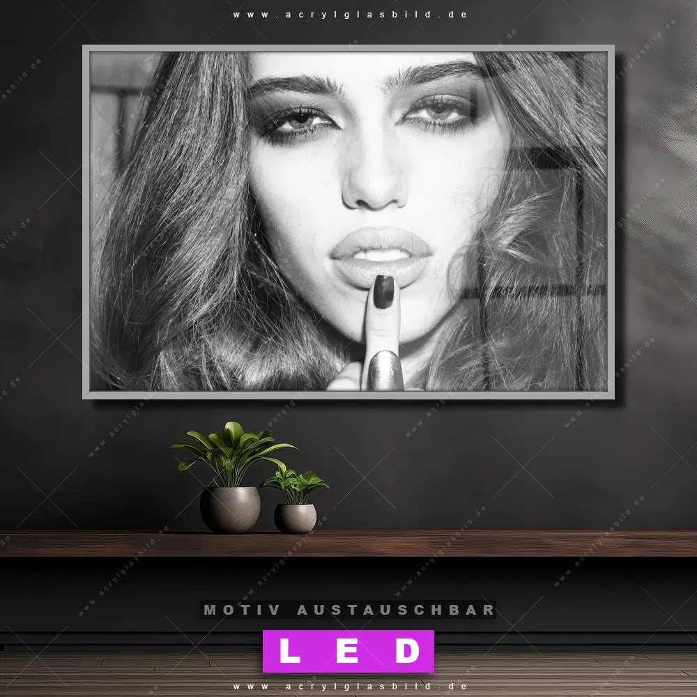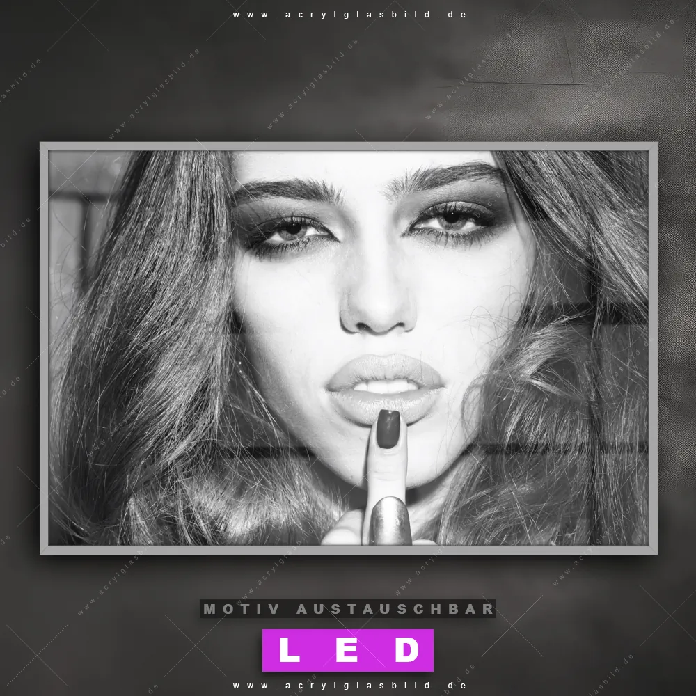 Mit unserem LED Acrylglasbild Canvalight® DIA Frau zeigt Mittelfinger und seiner genialen LED-Ausleuchtung wirst du nie wieder im Dunkeln auf deinem Sofa herumtappen. Wenn du nach einem beleuchteten Wandbild aus Acrylglas mit Frau, Lippen, Mund, Porträt, modern, Beauty, Schönheit, Mädchen, Finger, Mittelfinger, Stinkefinger für Bar - Gastronomie, Friseur - Beauty, Wohnzimmer - Schlafzimmer suchst, ist unser LED Leuchtbild selbstbewusste Frau in den beeindruckenden Motiv-Farben Schwarz, Weiss genau das richtige beleuchtete Wandbild für dich. Gestaltet im Modern Art, Schwarz - Weiss Stil, passt dieses LED Wandbild mit DIA-Klapprahmen und glänzender Front aus Acrylglas perfekt zu jedem Einrichtungsstil – sogar zu deinem chaotischen kreativen Durcheinander!