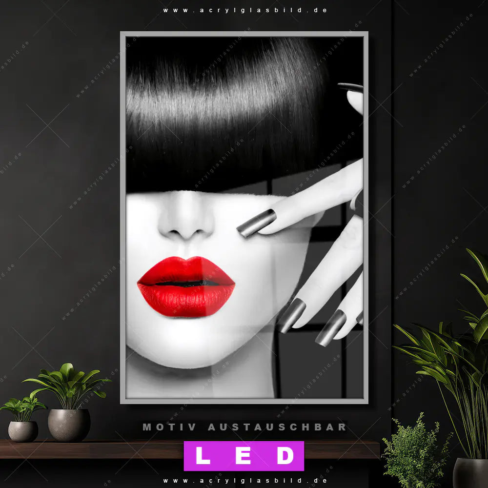 LED Acrylglasbild Canvalight® DIA | Schwarze Eleganz & rote Lippen | Hochformat