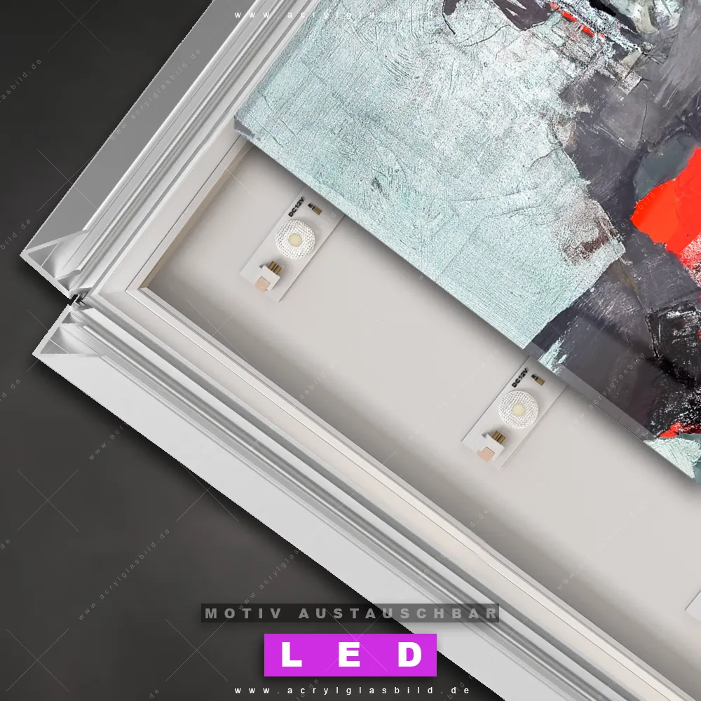 Vergiss dunkle Ecken und Langeweile! Mit unserem Acrylglasbild Leise Frau abstrakt und seiner brillanten LED-Ausleuchtung wirst du dich nie wieder in der Dunkelheit verirren. Wenn du auf der Suche nach einem beleuchteten Wandbild aus Acrylglas mit Abstrakt, Modern, Kunst, Gemälde, Leinwand, Frau, Portrait, Geheimnis, schweigen, Lippen bist, ist unser LED Acrylglasbild Canvalight® DIA Stille Frau abstrakt mit den strahlenden Motiv-Farben Weiss, Schwarz, Grau , Rot genau das richtige Leuchtbild für dich. Das im Abstrakt, Modern Art Stil gestaltete LED Bild mit glänzender Front aus Acrylglas passt perfekt zu jedem Einrichtungsstil in Wohnzimmer - Schlafzimmer, Bar - Gastronomie, Friseur - Beauty – vom minimalistischen Chic bis zum kreativen Chaos.
