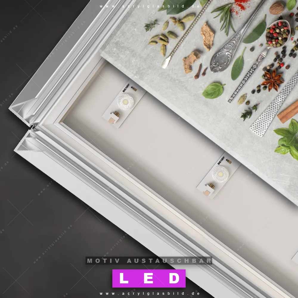Na, worauf wartest du noch? Mach deine Wände zum Star der Show und bestelle jetzt das Canvalight® DIA LED Acrylglasbild Frische Gewürze und Kräuter auf Löffeln. Deine Wände werden es dir danken und deine Freunde werden dank der wechselbaren Motive vor Neid platzen!