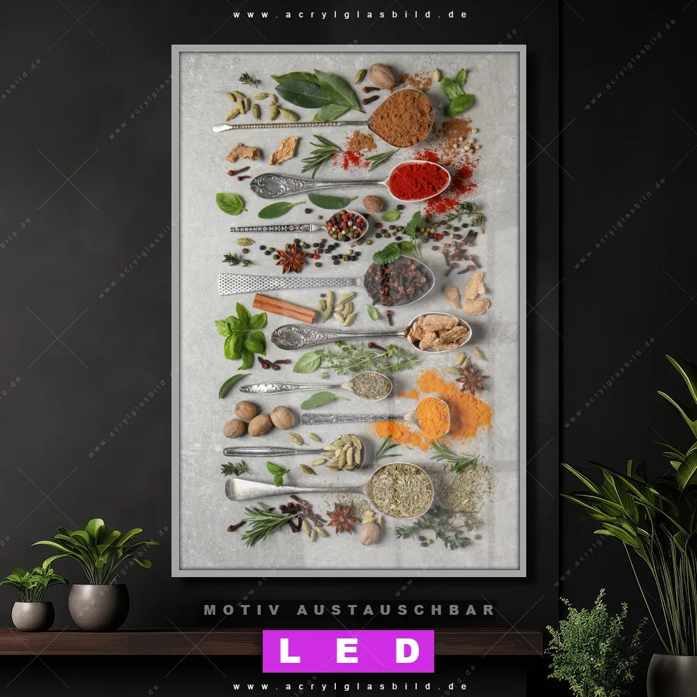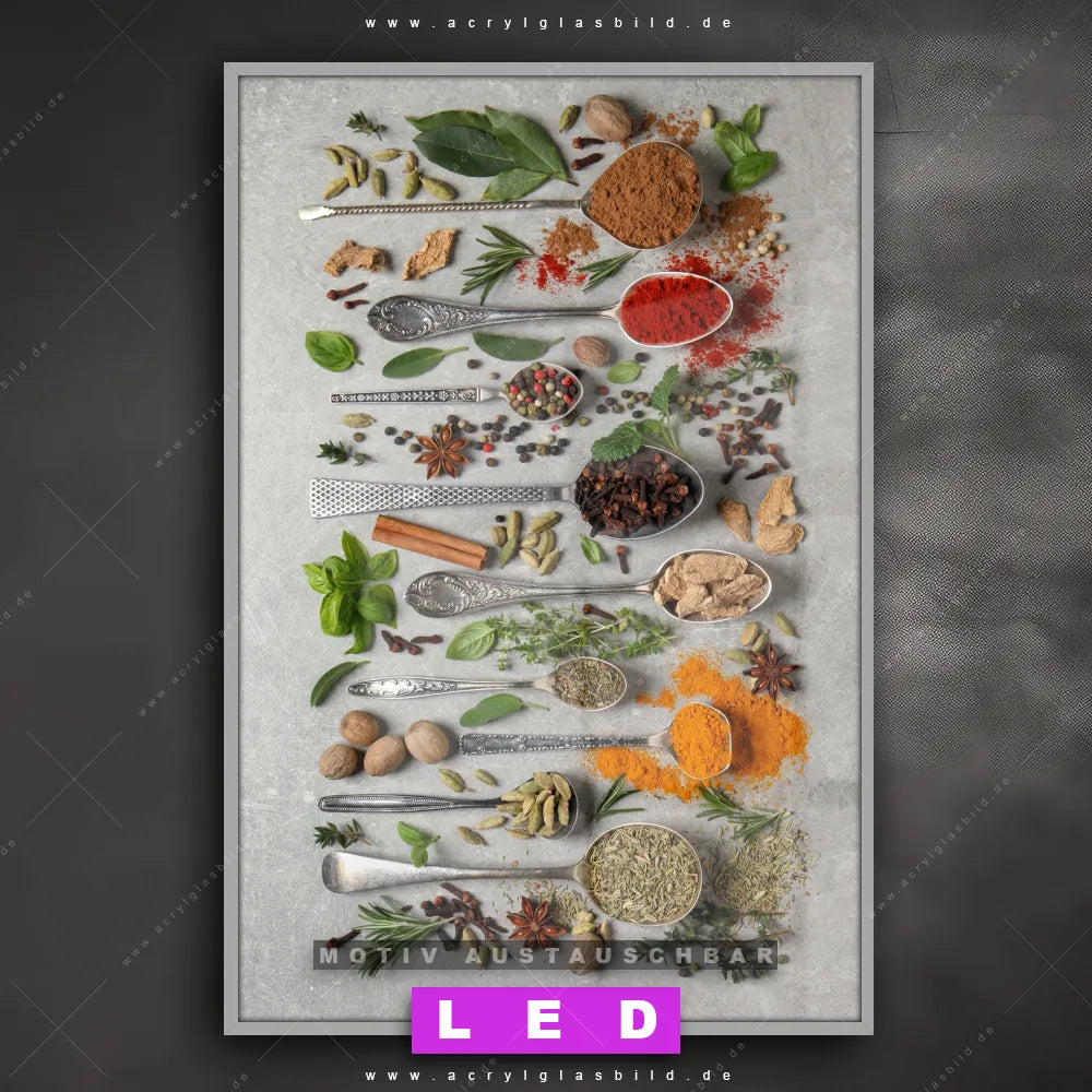 LED Acrylglasbild Canvalight® DIA | Silberlöffel mit Gewürzen | Hochformat