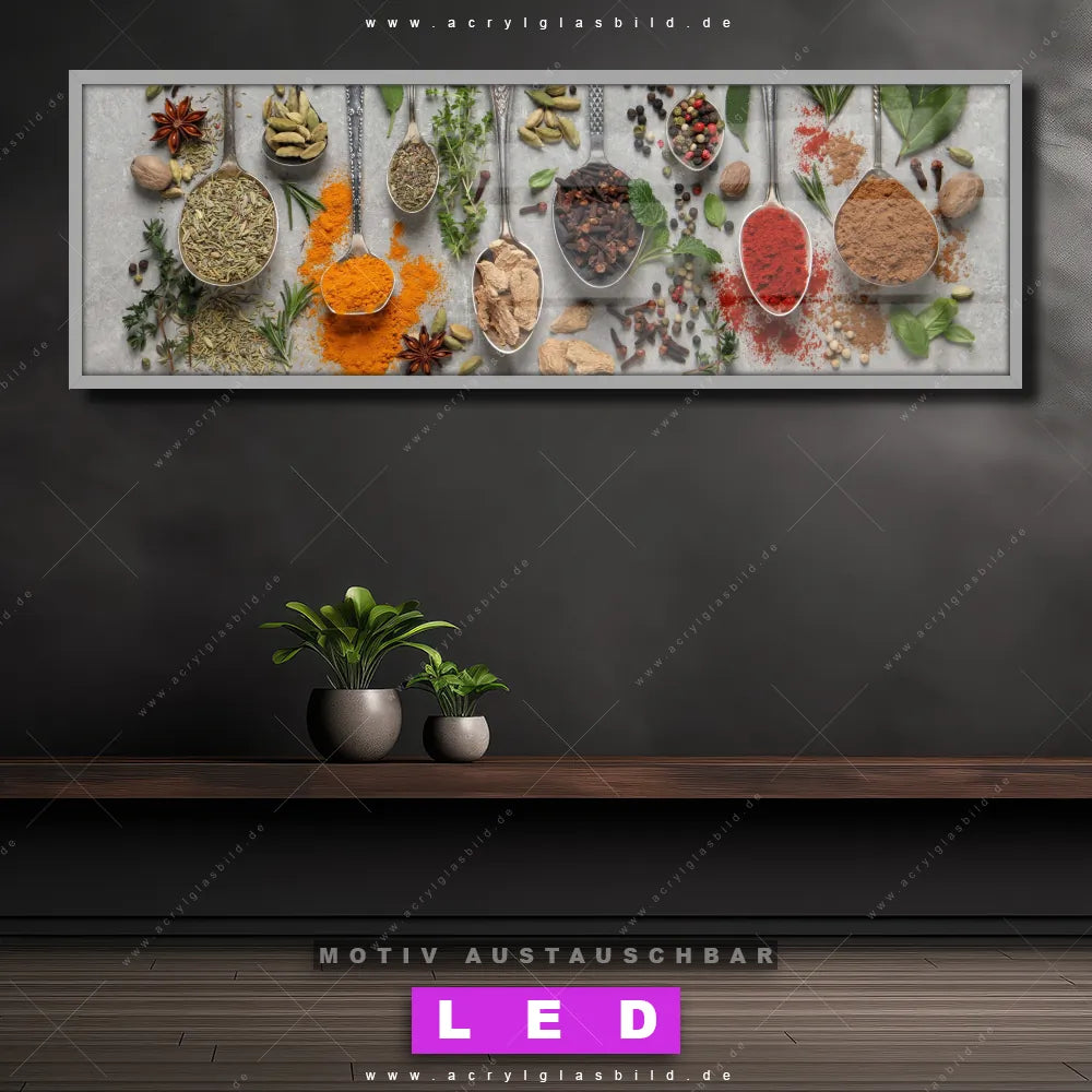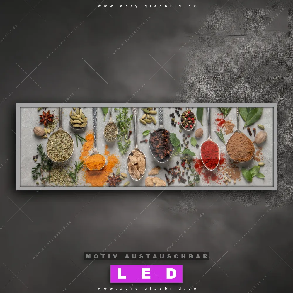 LED Acrylglasbild Canvalight® DIA | Silberlöffel mit Gewürzen | Panorama