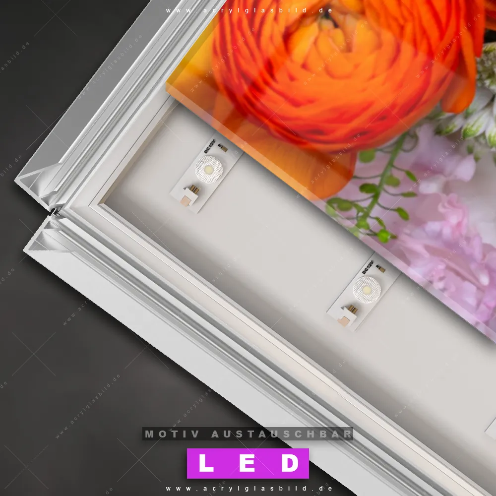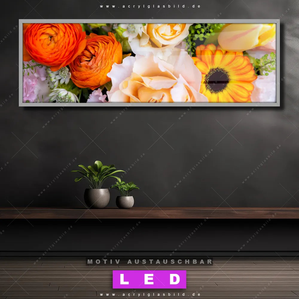 Deine Wände könnten dringend ein dimmbares LED Bild mit Fernbedienung und optionaler Farbtemperatursteuerung gebrauchen? Dann haben wir das perfekte Wandbild mit LED Beleuchtung für dich: unser mega-cooles Blumen - Botanik Canvalight® DIA LED Acrylglasbild! Mit unserem angesagten Leuchtbild aus Acrylglas im Panorama-Format und der austauschbaren bedruckten Acrylglas-Scheibe Sommerblumen bringst du nicht nur Licht, sondern auch jede Menge Flair in deine Räume.