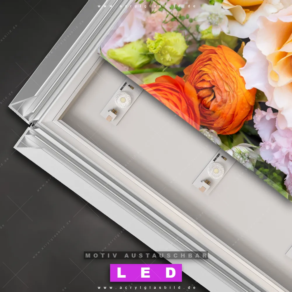 Also, worauf wartest du noch? Gib mit einem beleuchteten Wandbild mit wechselbarer Acrylglas-Scheibe deinen Wänden das gewisse Etwas und bestelle jetzt das LED Acrylglasbild Canvalight® DIA Frühlingsstrauß – dein Zuhause wird es dir danken und deine Freunde werden dank der wechselbaren Motive erblassen!