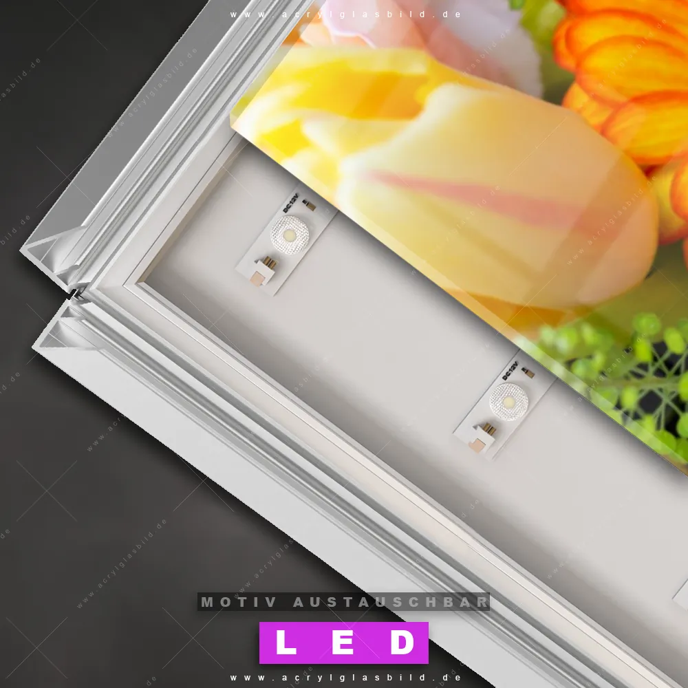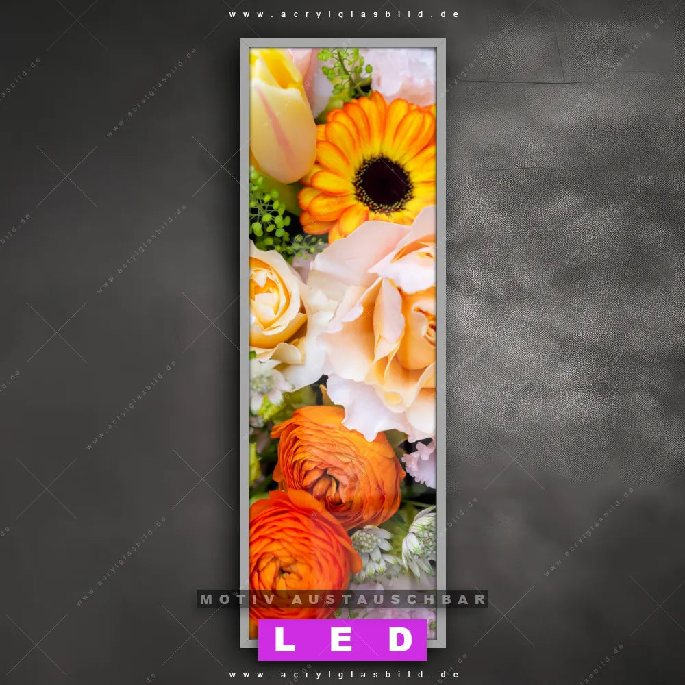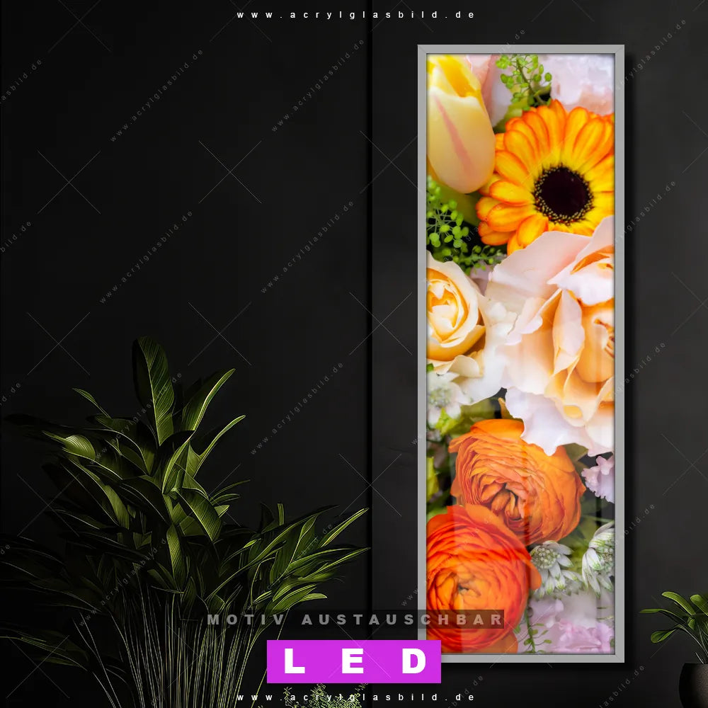 Bist du bereit, deine Wände mit einem dimmbaren LED Bild mit Fernbedienung und optionaler Farbtemperatursteuerung auf das nächste Level zu bringen? Unser Blumen - Botanik Canvalight® DIA LED Acrylglasbild ist genau das, was du brauchst! Das Wandbild mit LED Beleuchtung im Schmalen Format mit austauschbarer bedruckter Acrylglas-Scheibe Sommerblumen bringt Licht und Stil in dein Zuhause – und das in null Komma nichts!