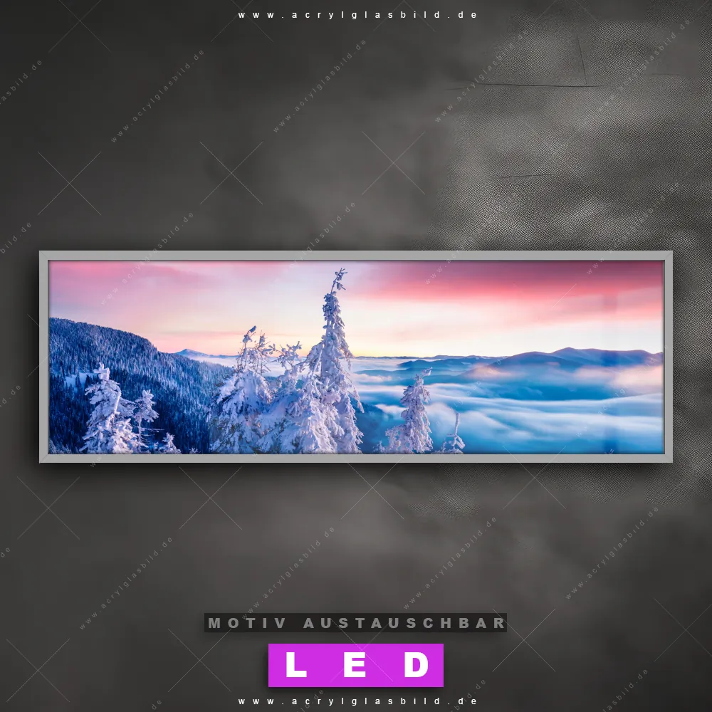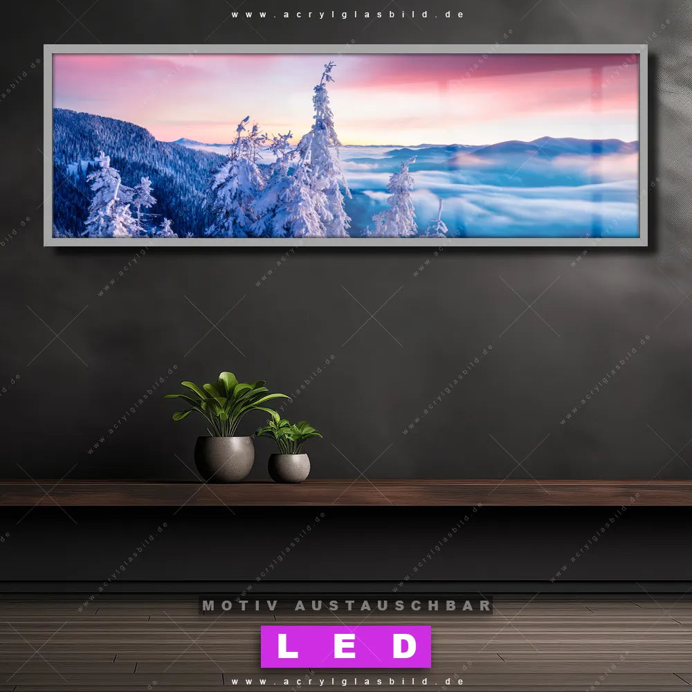LED Acrylglasbild Canvalight® DIA | Sonnenaufgang im Schnee | Panorama