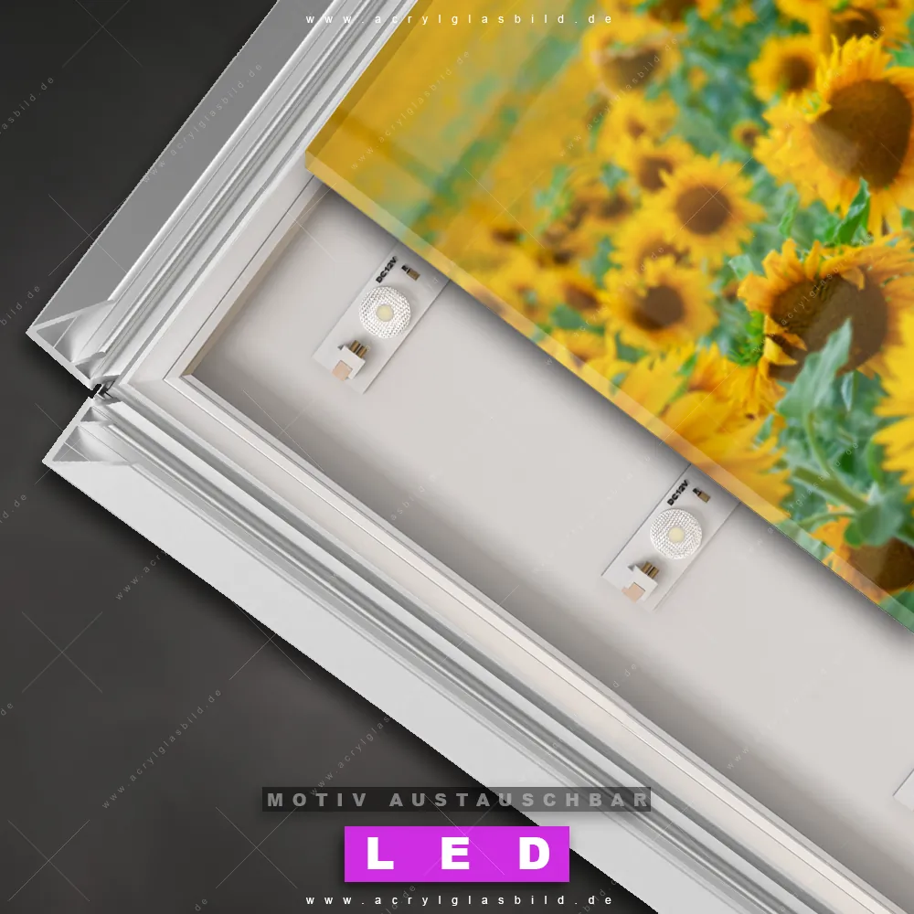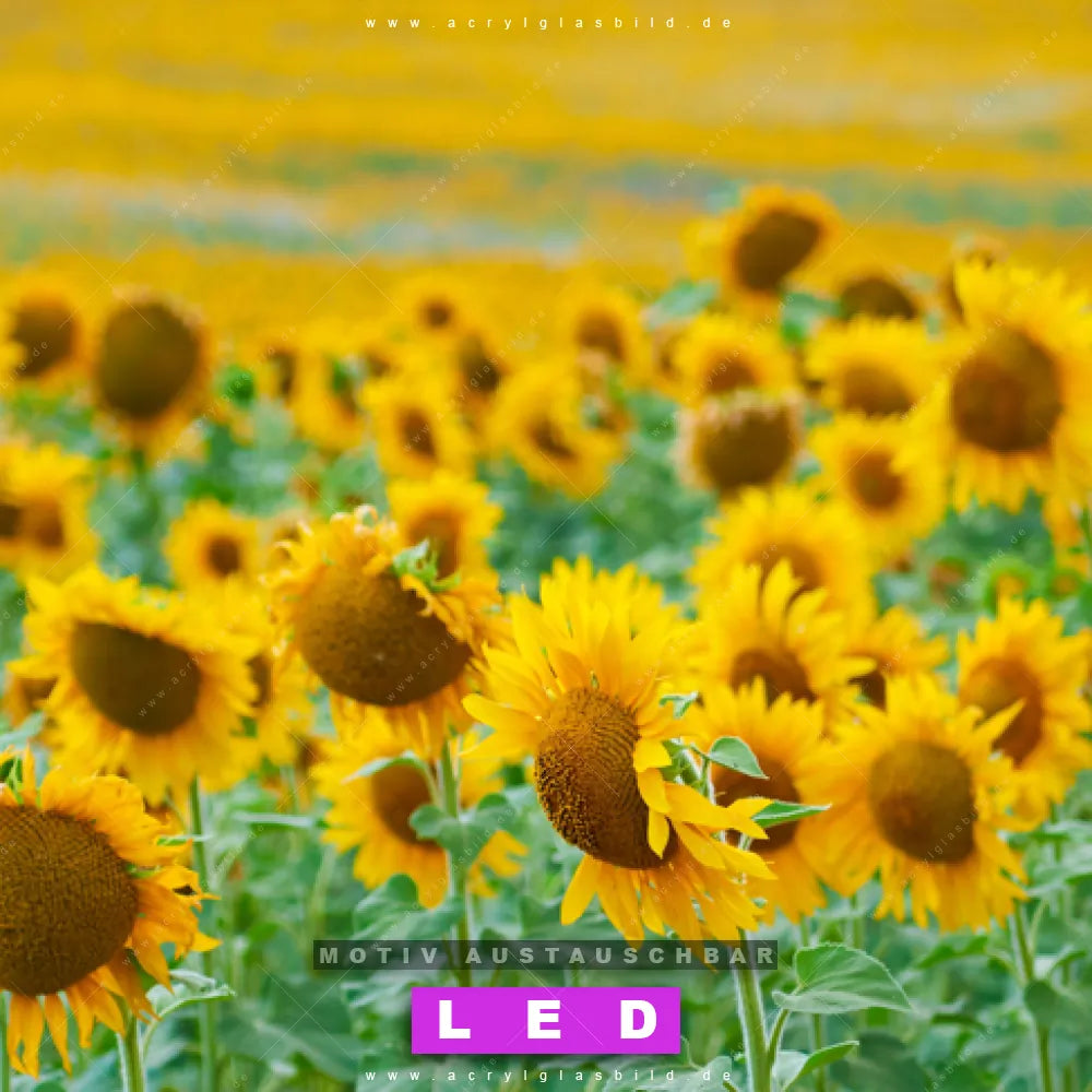 Also, worauf wartest du noch? Verwandle deine Wände mit einem LED Leuchtbild in wahre Kunstwerke und bestelle jetzt das Canvalight® DIA LED Acrylglasbild zahlreiche Sonnenblumenblüten. Deine Wände werden strahlen, und deine Freunde werden dank der wechselbaren Motive staunen!