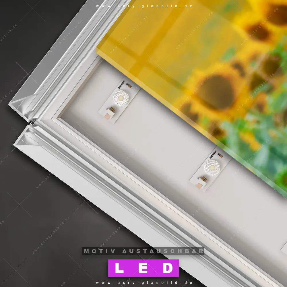 Also, warum noch zögern? Mach deine Wände mit einem Leuchtbild zum absoluten Hingucker und bestelle jetzt das Canvalight® DIA LED Acrylglasbild zahlreiche Sonnenblumenblüten. Deine Wände werden leuchten, und deine Freunde werden dank der wechselbaren Motive beeindruckt sein!