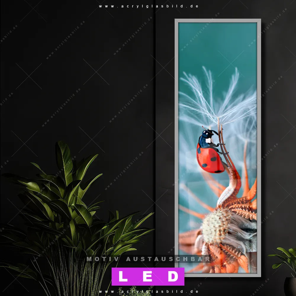 LED Acrylglasbild Canvalight® DIA | Sonnenkäfer auf Pusteblume | Schmal