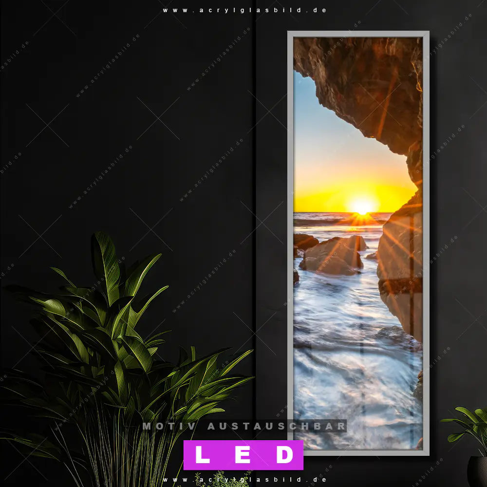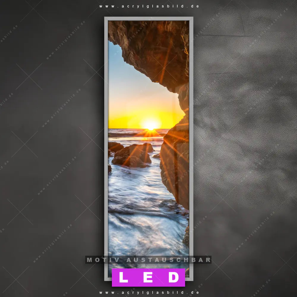 LED Acrylglasbild Canvalight® DIA | Sonnenuntergang in Meeresgrotte | Schmal