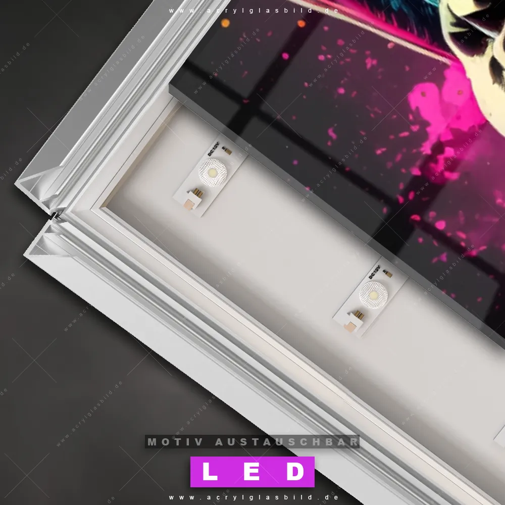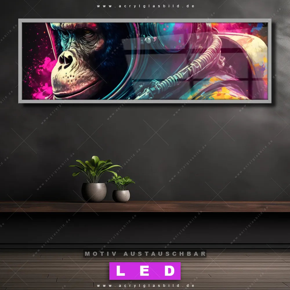Deine Wände könnten dringend ein dimmbares LED Bild mit Fernbedienung und optionaler Farbtemperatursteuerung gebrauchen? Dann haben wir das perfekte Wandbild mit LED Beleuchtung für dich: unser mega-cooles Tierwelt Canvalight® DIA LED Acrylglasbild! Mit unserem angesagten Leuchtbild aus Acrylglas im Panorama-Format und der austauschbaren bedruckten Acrylglas-Scheibe Space Monkey bringst du nicht nur Licht, sondern auch jede Menge Flair in deine Räume.