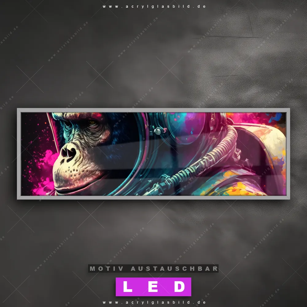 Also, worauf wartest du noch? Verwandle deine Wände mit einem LED Leuchtbild in wahre Kunstwerke und bestelle jetzt das Canvalight® DIA LED Acrylglasbild Bunter Affe als Astronaut. Deine Wände werden strahlen, und deine Freunde werden dank der wechselbaren Motive staunen!