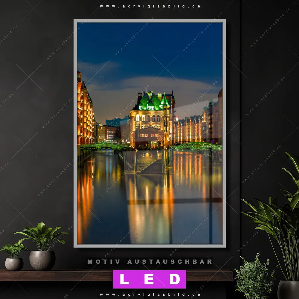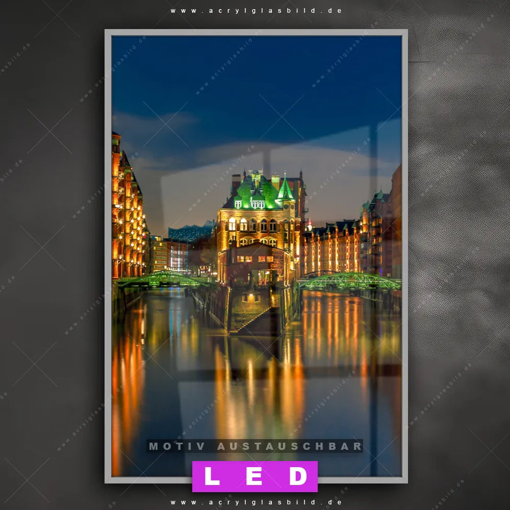 LED Acrylglasbild Canvalight® DIA | Speicherstadt Hamburg | Hochformat