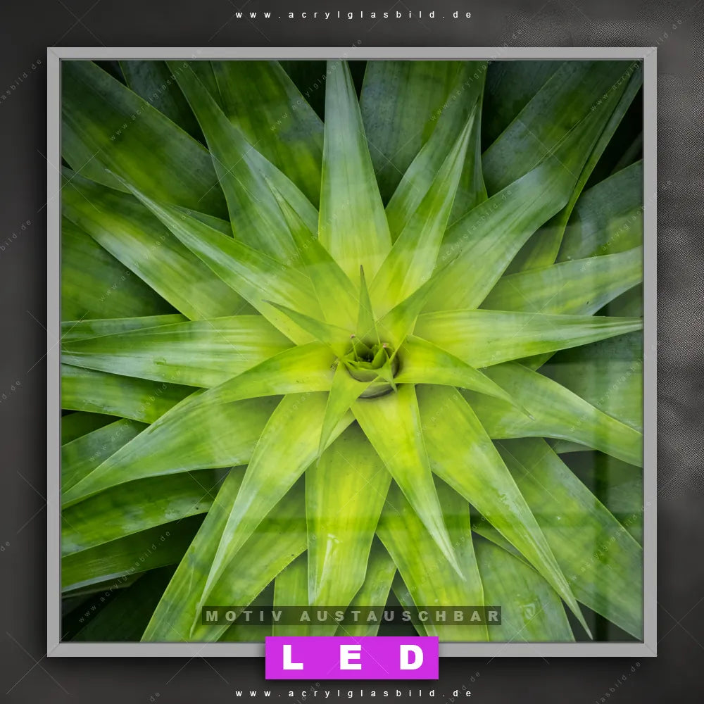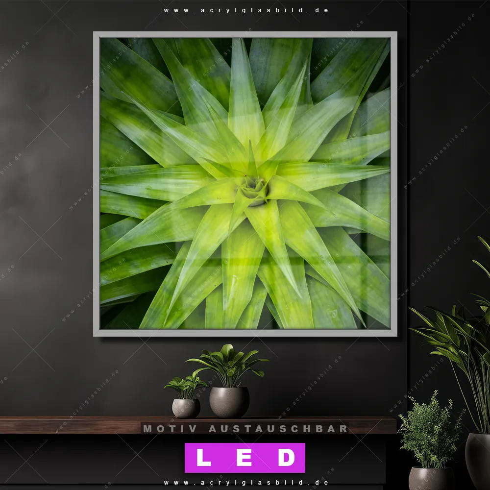 Bist du bereit, deine Wände mit einem dimmbaren LED Bild mit Fernbedienung und optionaler Farbtemperatursteuerung zum Leuchten zu bringen? Wir haben das ultimative Blumen - Botanik LED Acrylglasbild Canvalight® DIA für dich! Unser LED Wandbild aus Acrylglas Spitze Agavenblätter im Quadratischen Format mit austauschbarer bedruckter Acrylglas-Scheibe im DIA-Klapprahmen bringt sofort jede Menge Glanz in deine vier Wände.