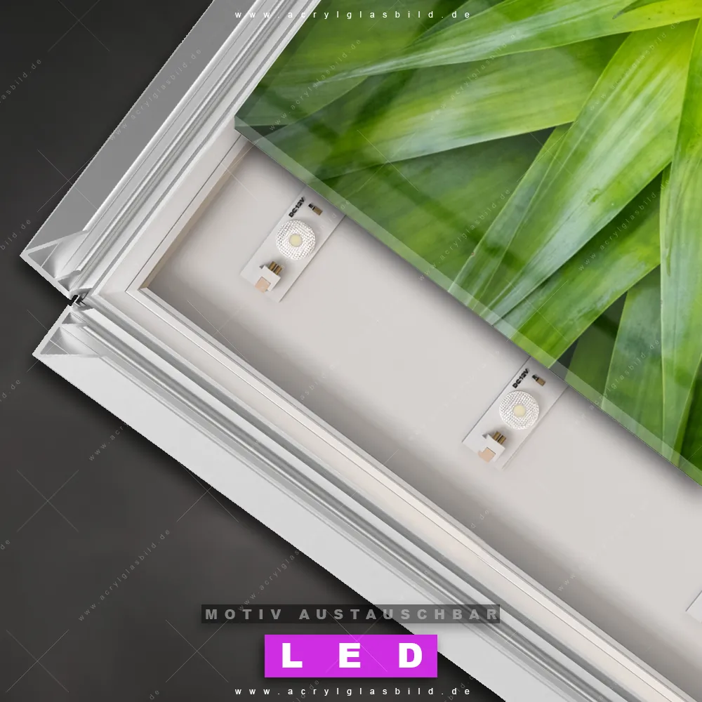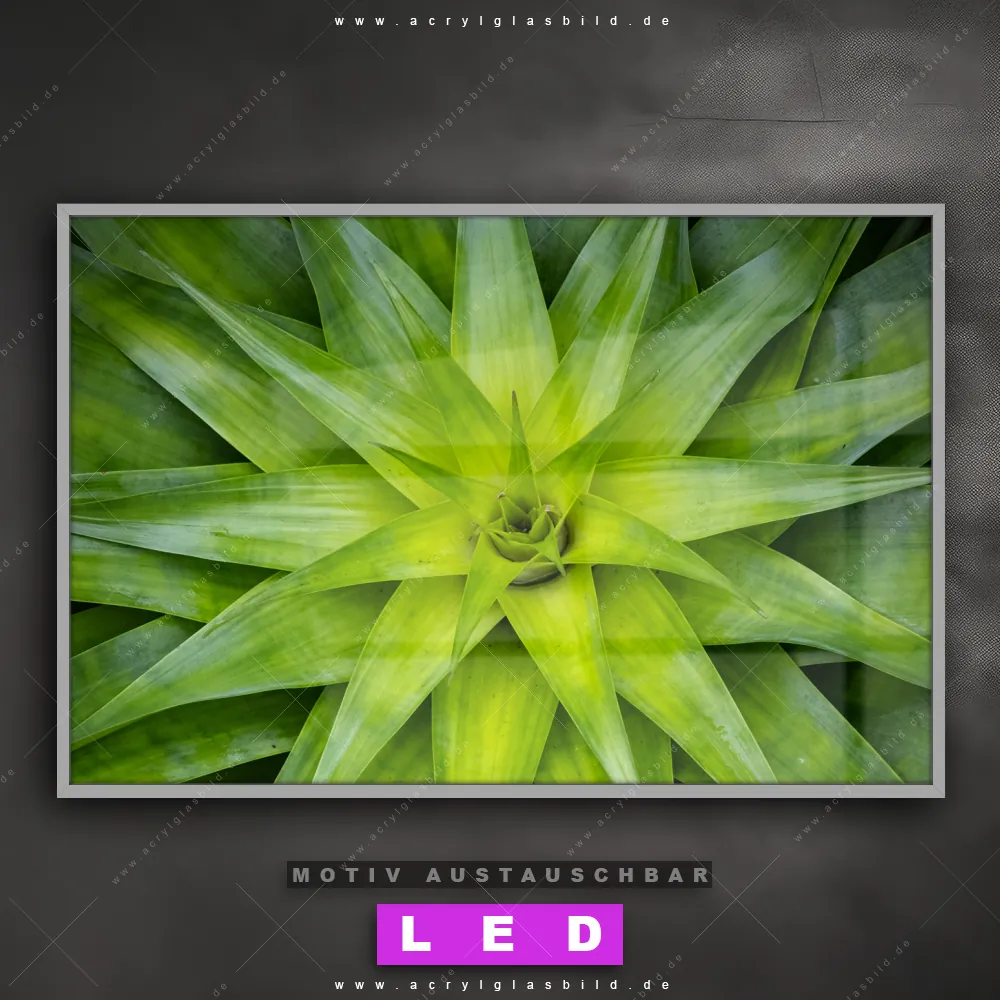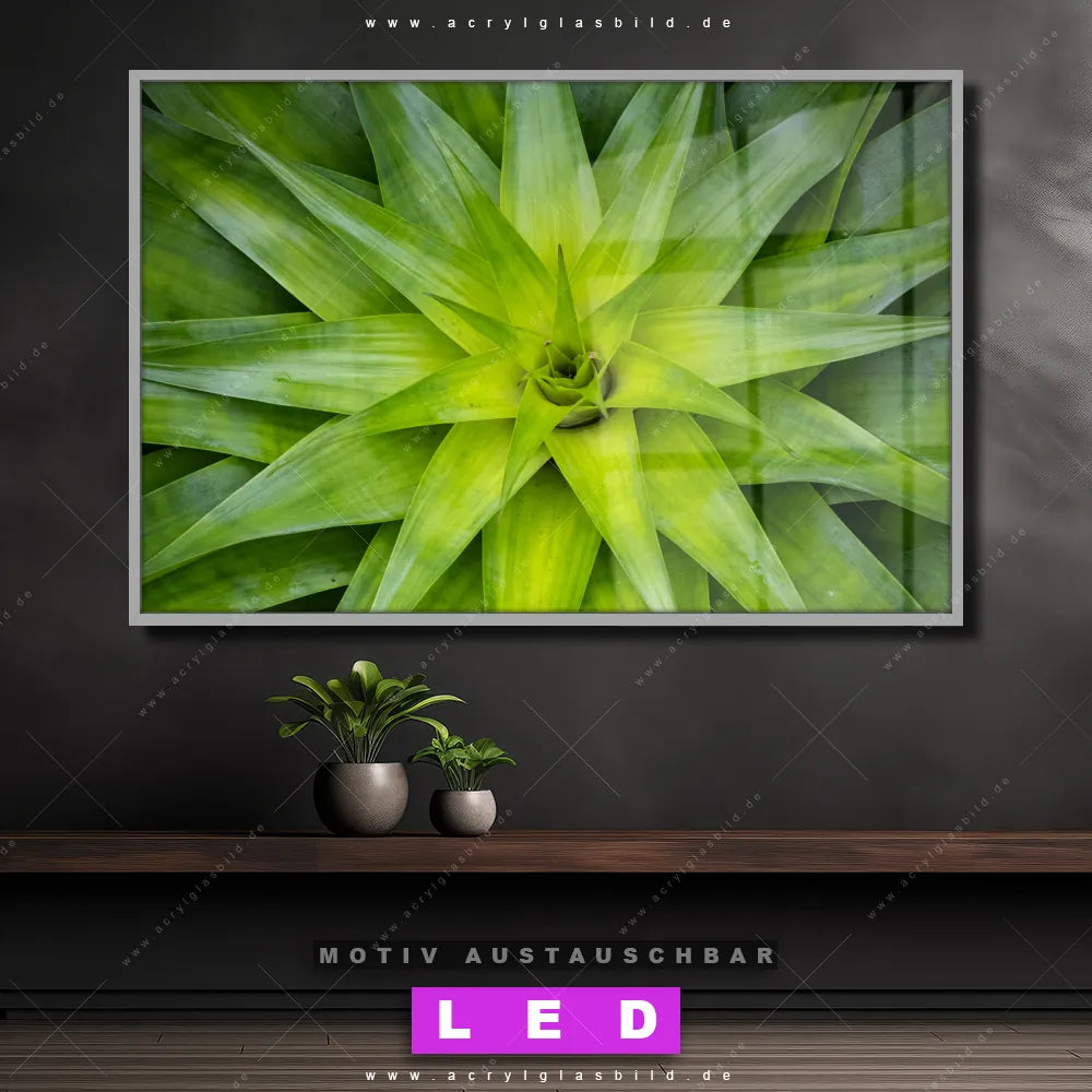 Du bist auf der Suche nach einem dimmbaren Blumen - Botanik LED Bild mit Fernbedienung und optionaler Farbtemperatursteuerung? Dann haben wir hier genau das richtige Wandbild mit LED Beleuchtung für dich: Unser Canvalight® DIA LED Acrylglasbild Spitze Agavenblätter im Querformat mit austauschbarer bedruckter Acrylglas-Scheibe. Dieses Leuchtbild bringt sofort Partybeleuchtung in deine Räume!