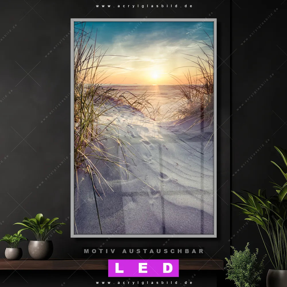 LED Acrylglasbild Canvalight® DIA | Strandlandschaft mit Gras | Hochformat