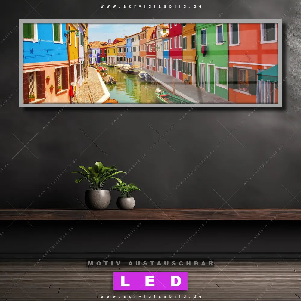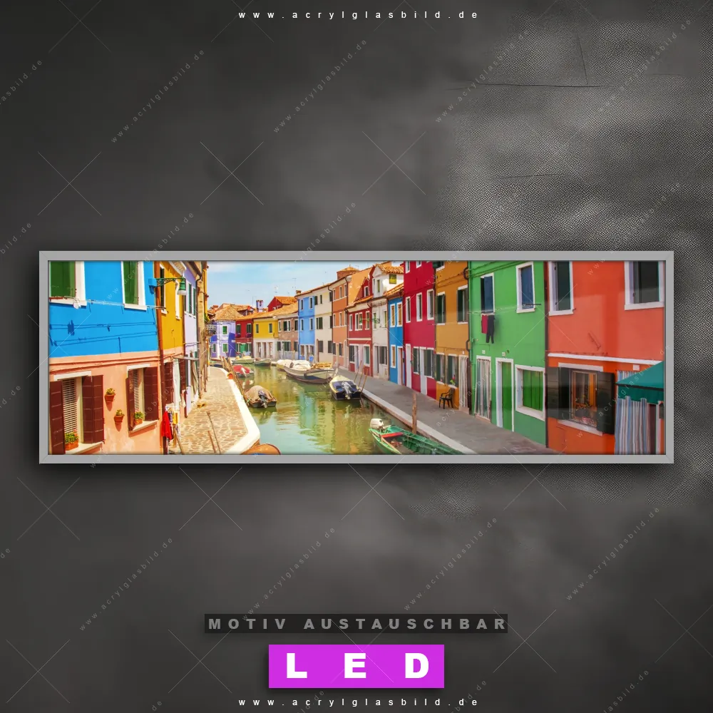 Wer will schon dunkle, triste Wände? Mit unserem LED Acrylglasbild Canvalight® DIA Wasserstraßen Venedig und seiner fantastischen LED-Ausleuchtung werden deine Wände in Arzt - Praxis, Bar - Gastronomie, Büro - Kanzlei, Flur - Eingangsbereich, Wohnzimmer - Schlafzimmer zu echten Hinguckern. Wenn du auf der Suche nach einem beleuchteten Wandbild aus Acrylglas mit Stadt, Skyline, Himmel, Hafenstadt, Fluss, Venedig, Burano, Boote, bunte Häuser bist, dann solltest du unser LED Leuchhtbild Boote in Venedig mit den beeindruckenden Motiv-Farben Bunt nicht verpassen. Gestaltet im angesagten Natürlich - Realistisch Stil, passt das LED Bild mit DIA-Klapprahmen und wechselbarer Acrylglas-Scheibe perfekt zu jedem Einrichtungsstil – selbst in deinem kleinen Dschungel aus Kreativität und Chaos!