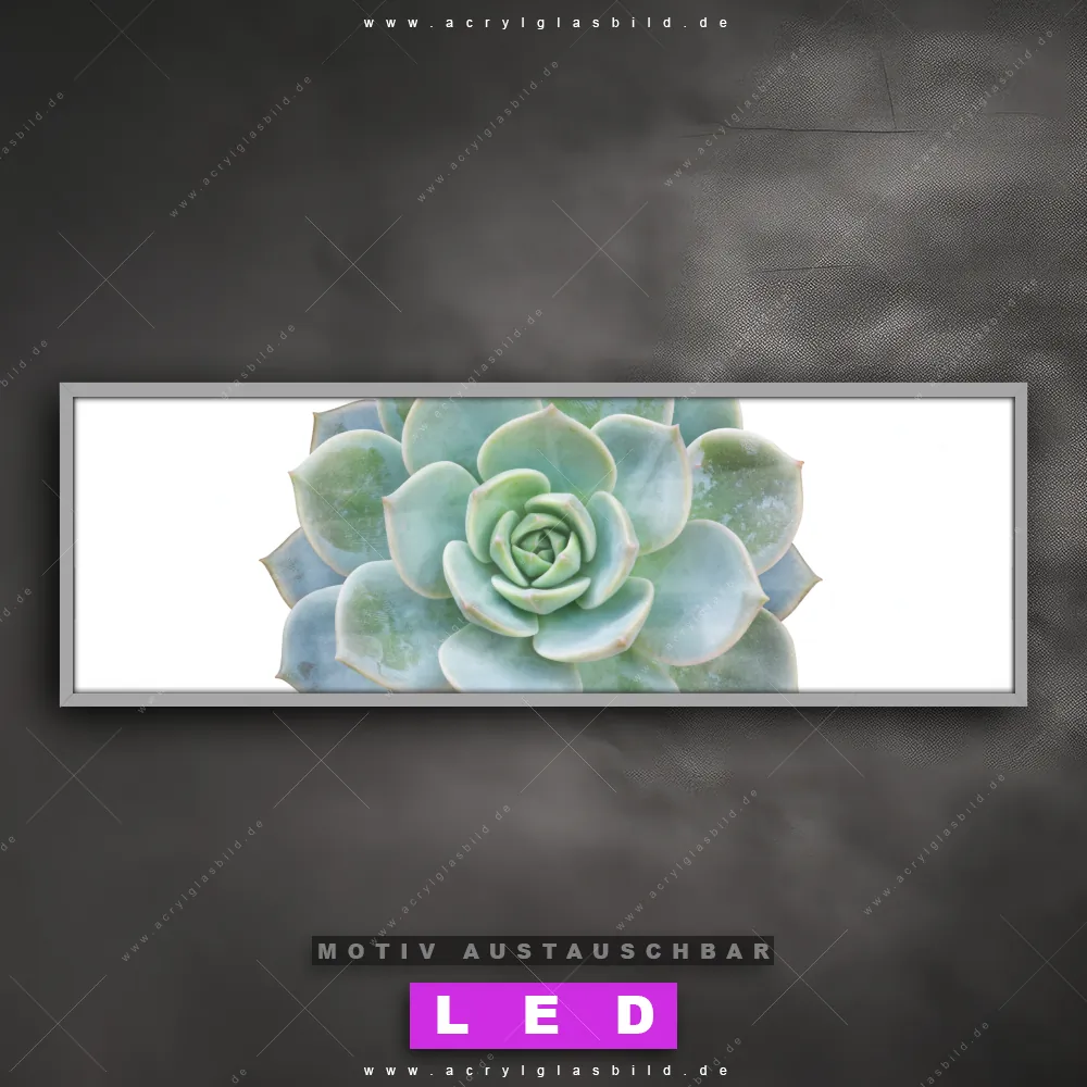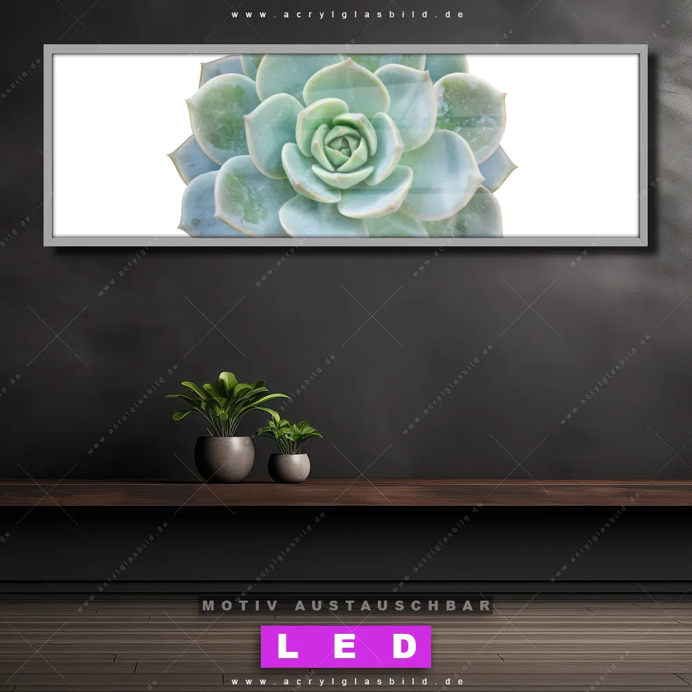 Deine Wände könnten dringend ein dimmbares LED Bild mit Fernbedienung und optionaler Farbtemperatursteuerung gebrauchen? Dann haben wir das perfekte Wandbild mit LED Beleuchtung für dich: unser mega-cooles Blumen - Botanik, Muster - Texturen Canvalight® DIA LED Acrylglasbild! Mit unserem angesagten Leuchtbild aus Acrylglas im Panorama-Format und der austauschbaren bedruckten Acrylglas-Scheibe Sukkulente No.3 bringst du nicht nur Licht, sondern auch jede Menge Flair in deine Räume.