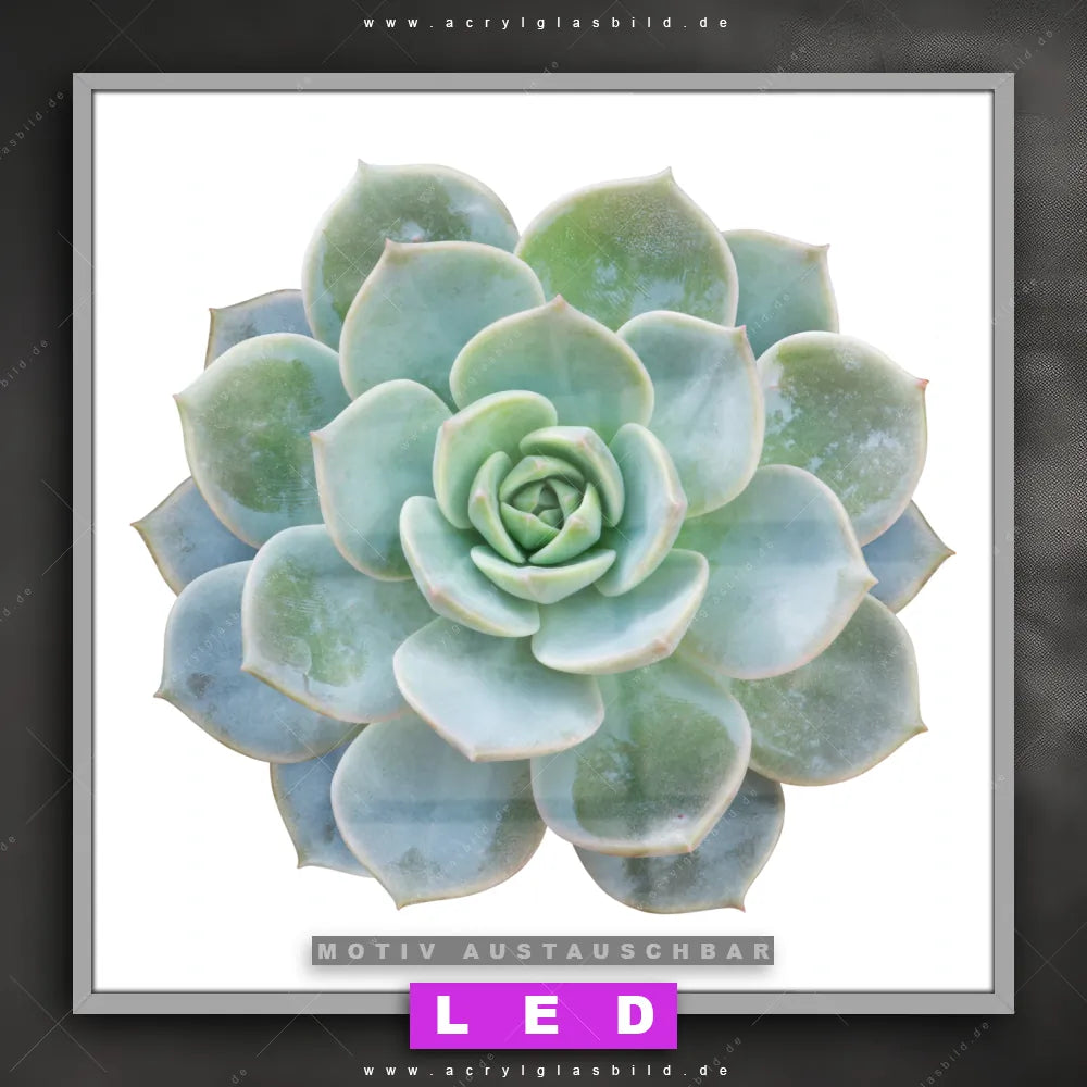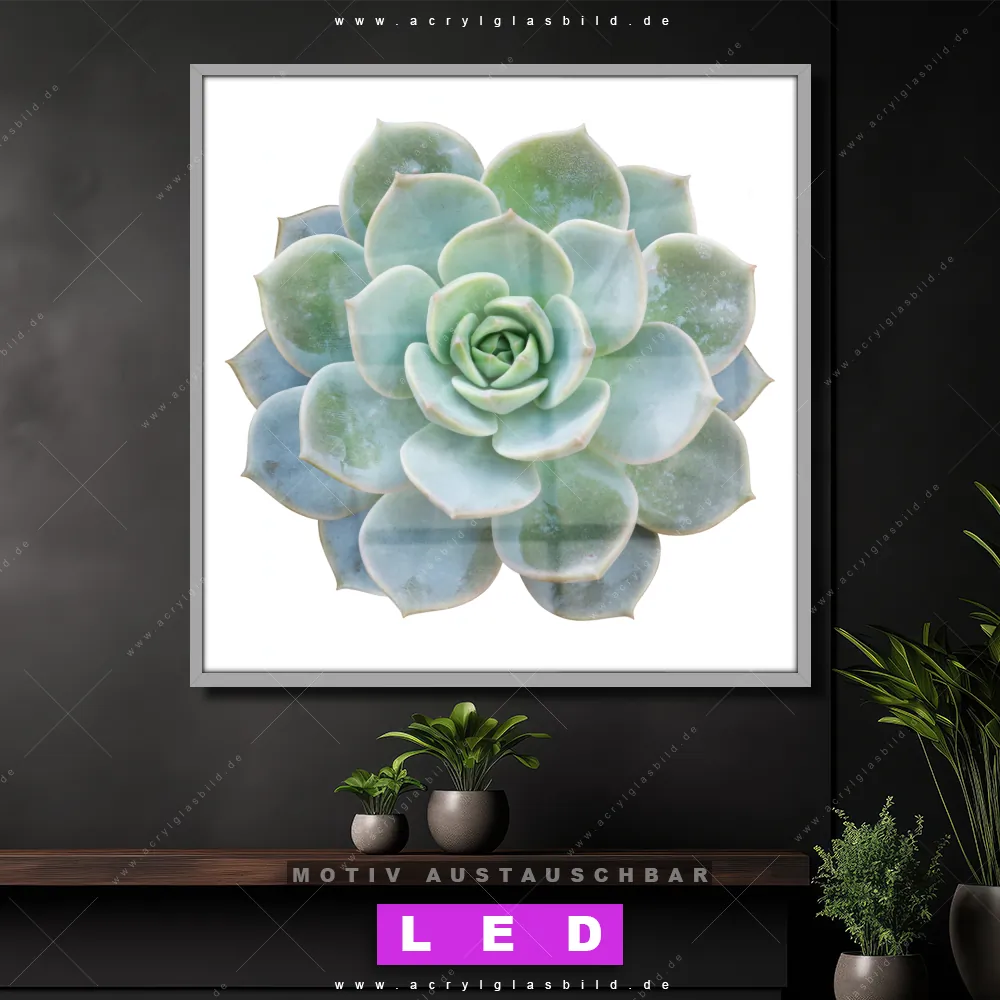 Bist du bereit, deine Wände mit einem dimmbaren LED Bild mit Fernbedienung und optionaler Farbtemperatursteuerung zum Leuchten zu bringen? Wir haben das ultimative Blumen - Botanik, Muster - Texturen LED Acrylglasbild Canvalight® DIA für dich! Unser LED Wandbild aus Acrylglas Sukkulente No.3 im Quadratischen Format mit austauschbarer bedruckter Acrylglas-Scheibe im DIA-Klapprahmen bringt sofort jede Menge Glanz in deine vier Wände.