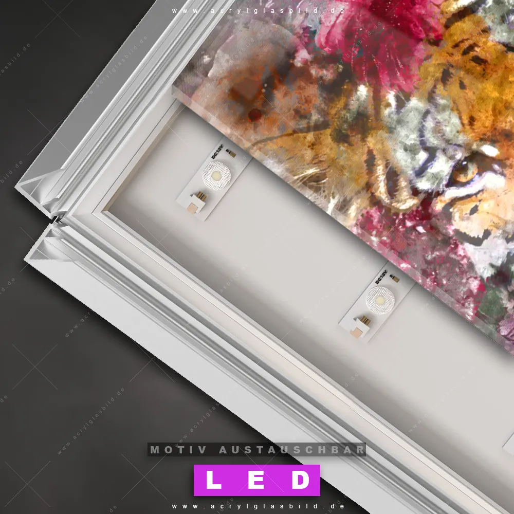 Na, worauf wartest du noch? Mach deine Wände zum Star der Show und bestelle jetzt das Canvalight® DIA LED Acrylglasbild Tiger im Blumenkleid. Deine Wände werden es dir danken und deine Freunde werden dank der wechselbaren Motive vor Neid platzen!