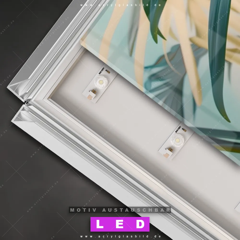 Also, worauf wartest du noch? Verwandle deine Wände mit einem LED Leuchtbild in wahre Kunstwerke und bestelle jetzt das Canvalight® DIA LED Acrylglasbild Palmenblätter in Mint & Rosa. Deine Wände werden strahlen, und deine Freunde werden dank der wechselbaren Motive staunen!