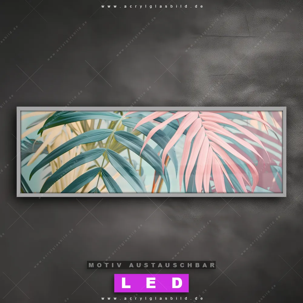 LED Acrylglasbild Canvalight® DIA | Tropische Blätter in Pastellfarben | Panorama