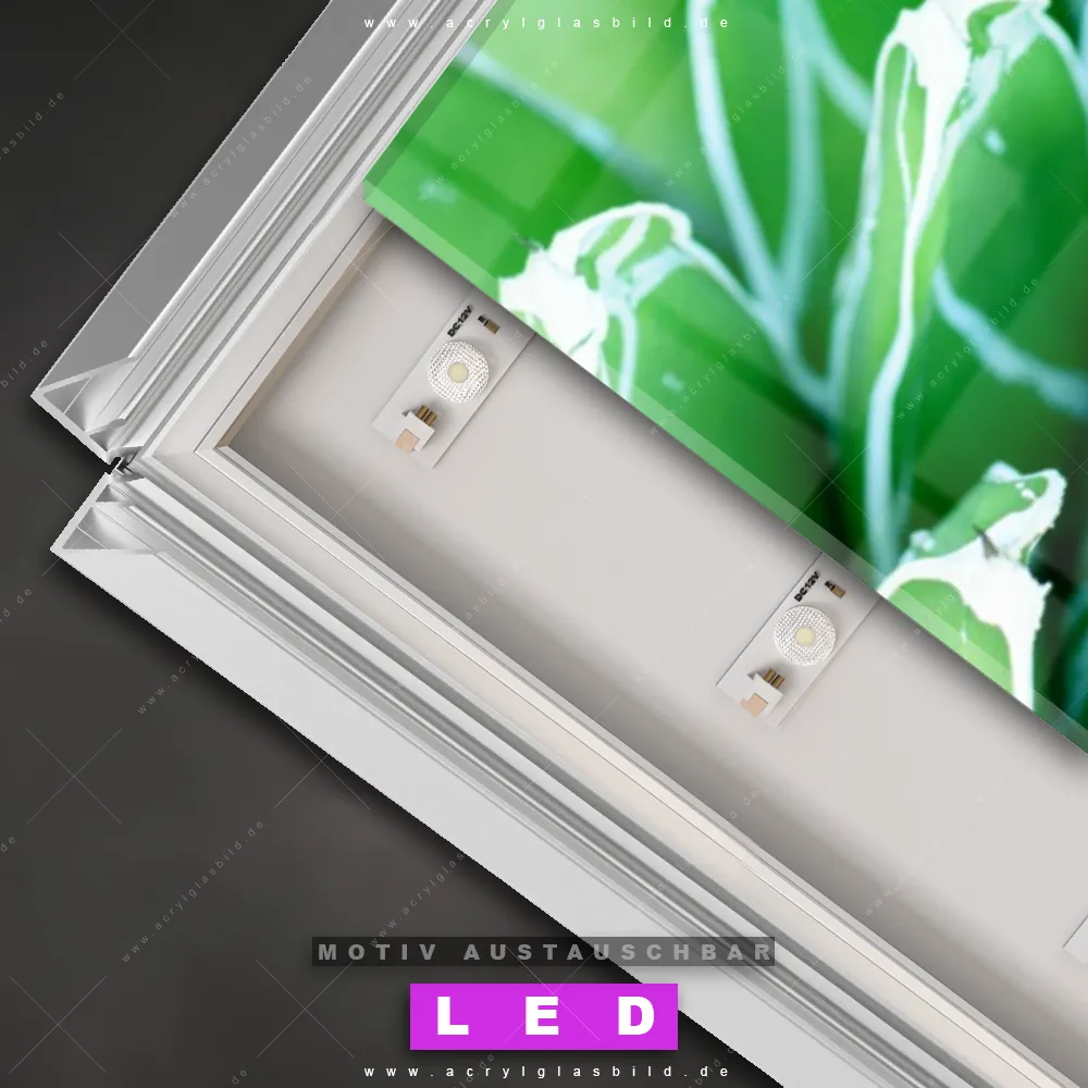 Bist du bereit, deine Wände mit einem dimmbaren LED Bild mit Fernbedienung und optionaler Farbtemperatursteuerung auf das nächste Level zu bringen? Unser Blumen - Botanik Canvalight® DIA LED Acrylglasbild ist genau das, was du brauchst! Das Wandbild mit LED Beleuchtung im Schmalen Format mit austauschbarer bedruckter Acrylglas-Scheibe Tropische Pflanze bringt Licht und Stil in dein Zuhause – und das in null Komma nichts!