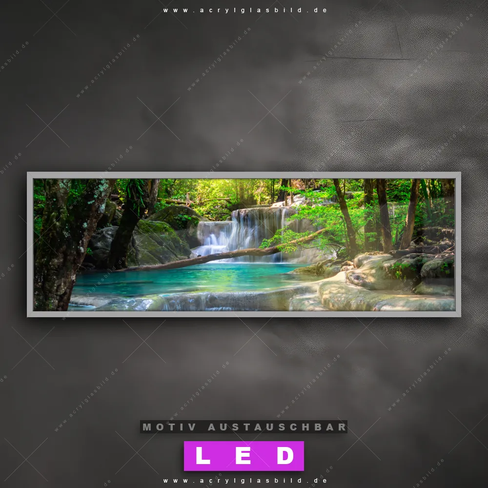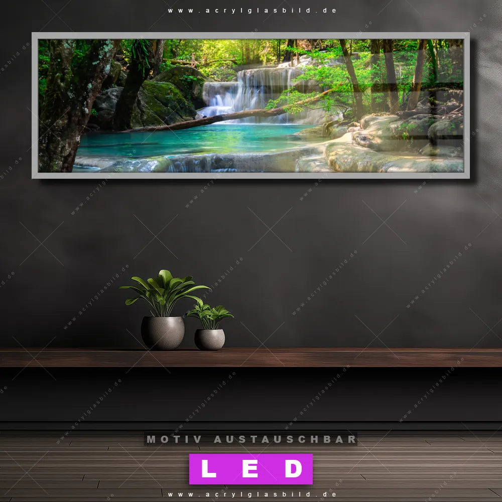 Deine Wände könnten dringend ein dimmbares LED Bild mit Fernbedienung und optionaler Farbtemperatursteuerung gebrauchen? Dann haben wir das perfekte Wandbild mit LED Beleuchtung für dich: unser mega-cooles Landschaften Canvalight® DIA LED Acrylglasbild! Mit unserem angesagten Leuchtbild aus Acrylglas im Panorama-Format und der austauschbaren bedruckten Acrylglas-Scheibe Tropischer Wasserfall bringst du nicht nur Licht, sondern auch jede Menge Flair in deine Räume.