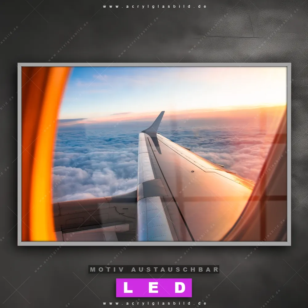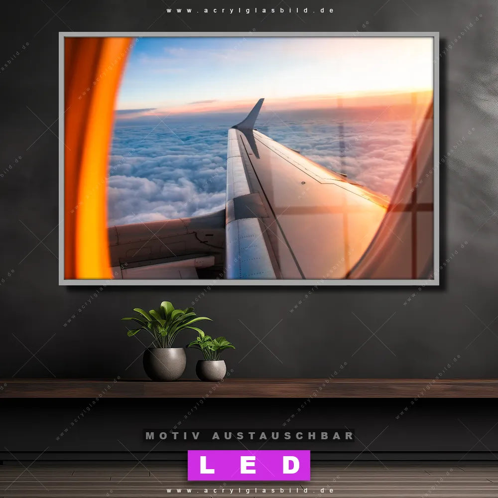Mit unserem LED Acrylglasbild Canvalight® DIA Ausblick Flugzeugfenster und seiner genialen LED-Ausleuchtung wirst du nie wieder im Dunkeln auf deinem Sofa herumtappen. Wenn du nach einem beleuchteten Wandbild aus Acrylglas mit Urlaub, Reisen, Wolken, Flugzeug, fliegen, Fensterblick, über den Wolken für Bar - Gastronomie, Wohnzimmer - Schlafzimmer, Küche - Esszimmer, Büro - Kanzlei suchst, ist unser LED Leuchtbild Wolkenaussicht aus Flugzeug in den beeindruckenden Motiv-Farben Blau, Orange genau das richtige beleuchtete Wandbild für dich. Gestaltet im Natürlich - Realistisch Stil, passt dieses LED Wandbild mit DIA-Klapprahmen und glänzender Front aus Acrylglas perfekt zu jedem Einrichtungsstil – sogar zu deinem chaotischen kreativen Durcheinander!