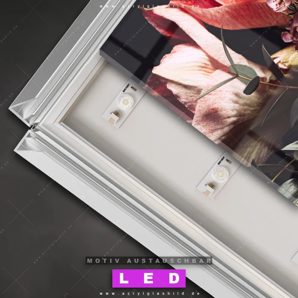 Du suchst nach einem Wandbild mit LED Beleuchtung als ultimativen Hingucker für deine Wände? Dann haben wir das perfekte dimmbare LED Bild mit Fernbedienung und optionaler Farbtemperatursteuerung für dich: unser abgefahrenes Blumen - Botanik Canvalight® DIA LED Acrylglasbild! Mit dem LED Leuchtbild aus Acrylglas Vintage Blumenstrauß im Hochformat mit austauschbarer bedruckter Acrylglas-Scheibe bringst du nicht nur Licht, sondern auch ordentlich Stil in deine Bude.