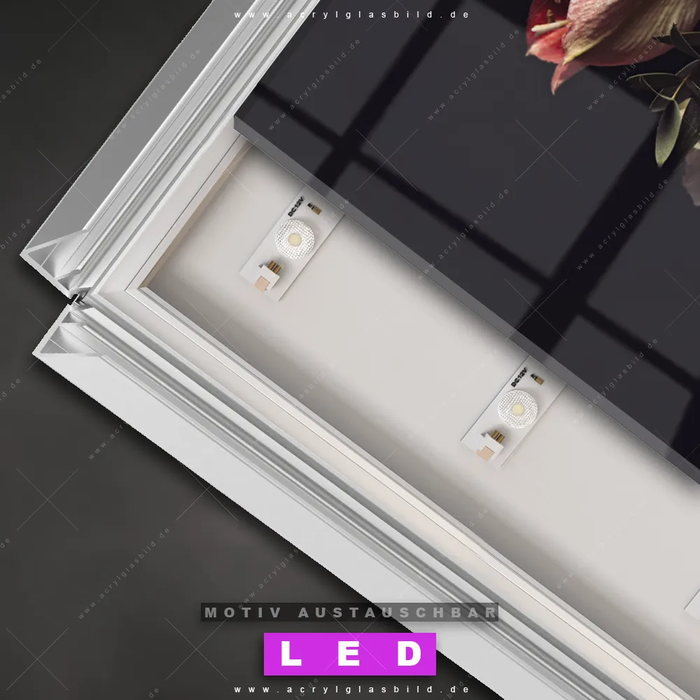 Du bist auf der Suche nach einem dimmbaren Blumen - Botanik LED Bild mit Fernbedienung und optionaler Farbtemperatursteuerung? Dann haben wir hier genau das richtige Wandbild mit LED Beleuchtung für dich: Unser Canvalight® DIA LED Acrylglasbild Vintage Blumenstrauß im Querformat mit austauschbarer bedruckter Acrylglas-Scheibe. Dieses Leuchtbild bringt sofort Partybeleuchtung in deine Räume!