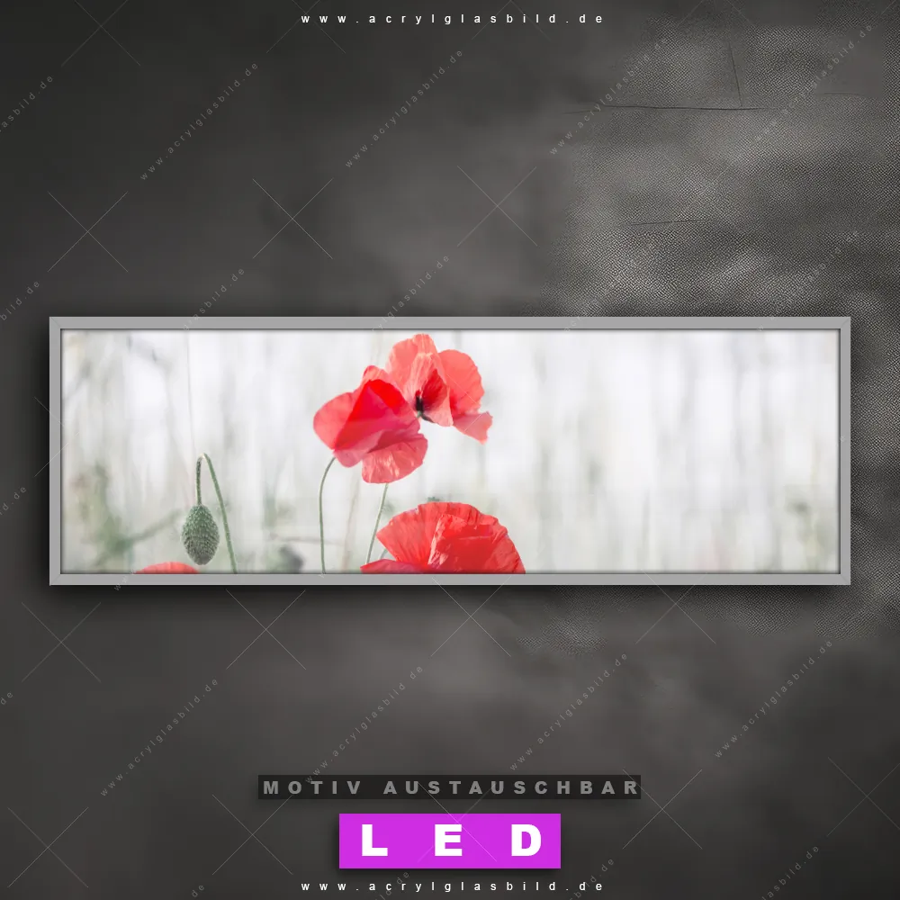 Also, worauf wartest du noch? Verwandle deine Wände mit einem LED Leuchtbild in wahre Kunstwerke und bestelle jetzt das Canvalight® DIA LED Acrylglasbild Rote retro Mohnblumen. Deine Wände werden strahlen, und deine Freunde werden dank der wechselbaren Motive staunen!