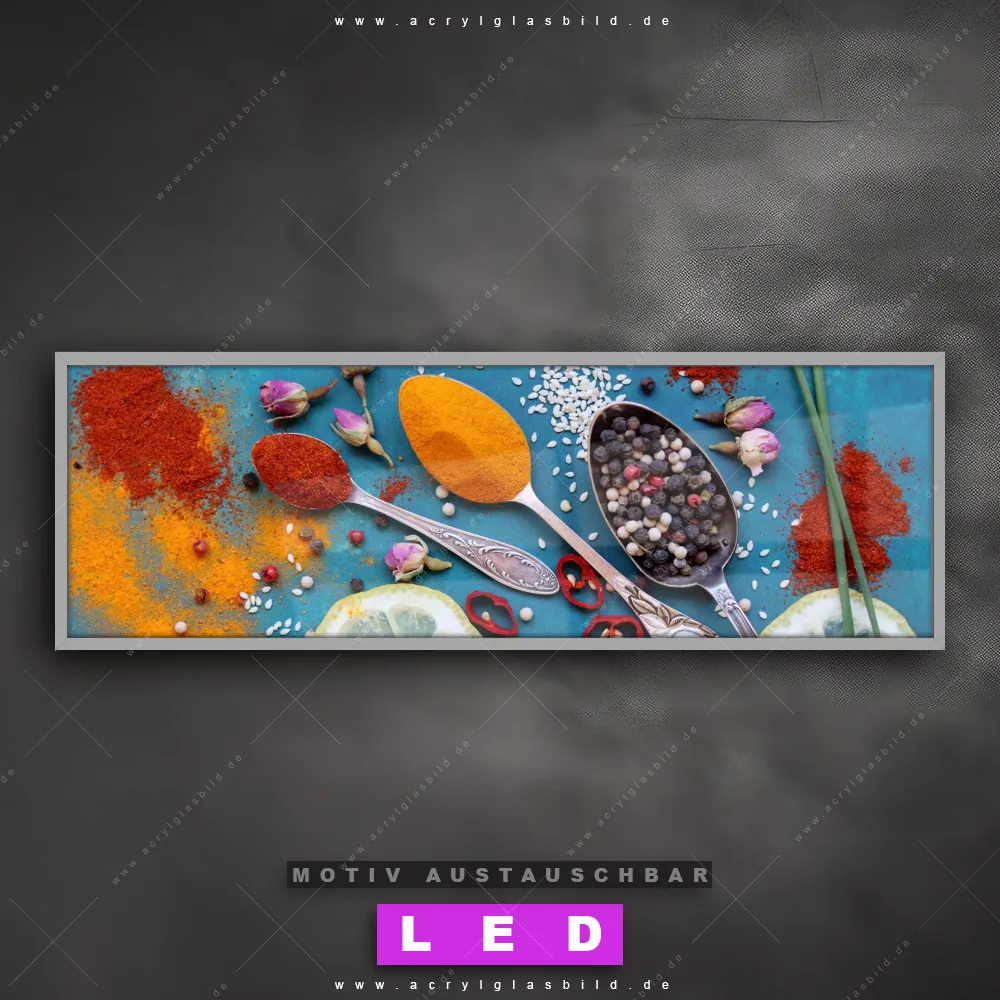 LED Acrylglasbild Canvalight® DIA | Vintage Silberlöffel mit Gewürzen | Panorama