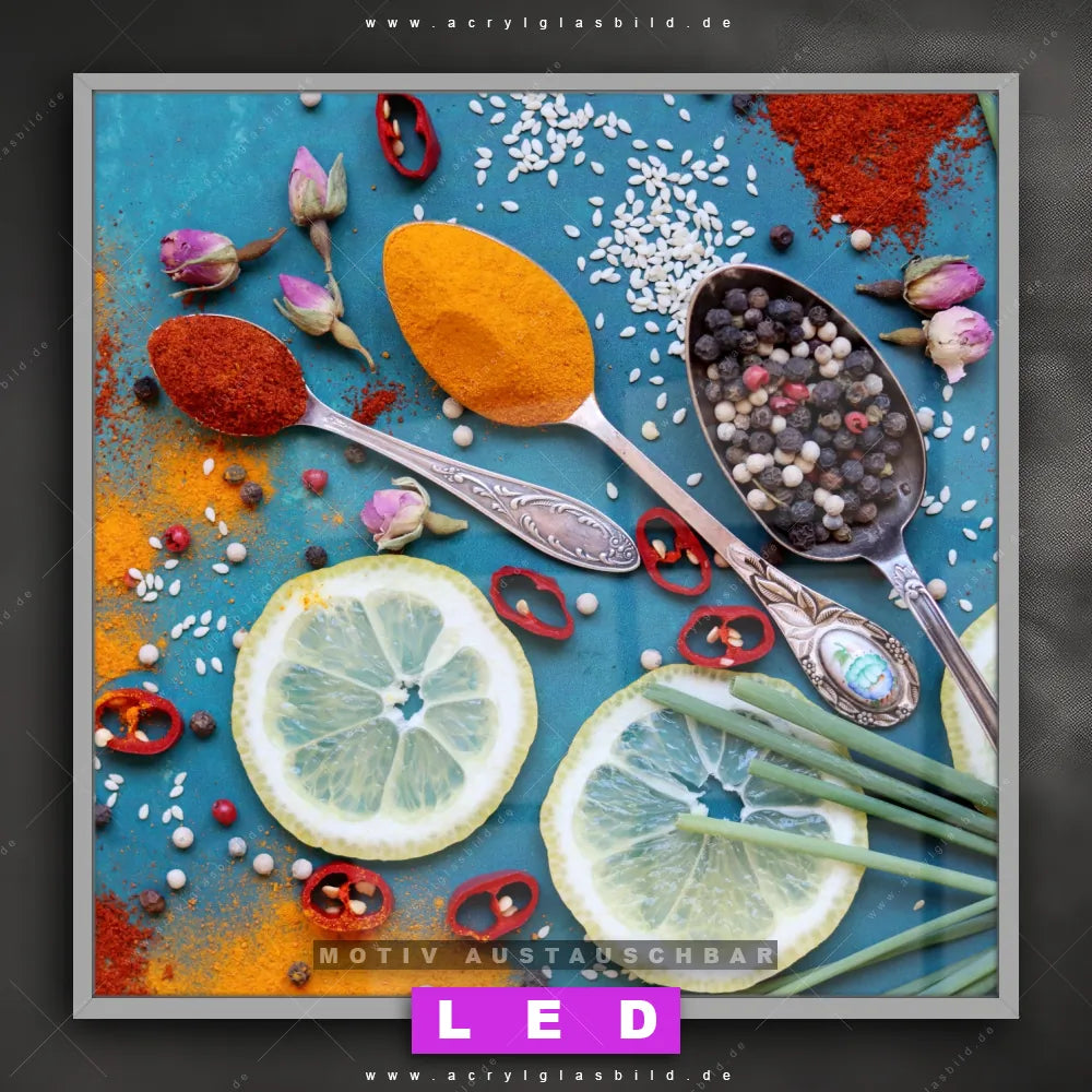 LED Acrylglasbild Canvalight® DIA | Vintage Silberlöffel mit Gewürzen | Quadrat