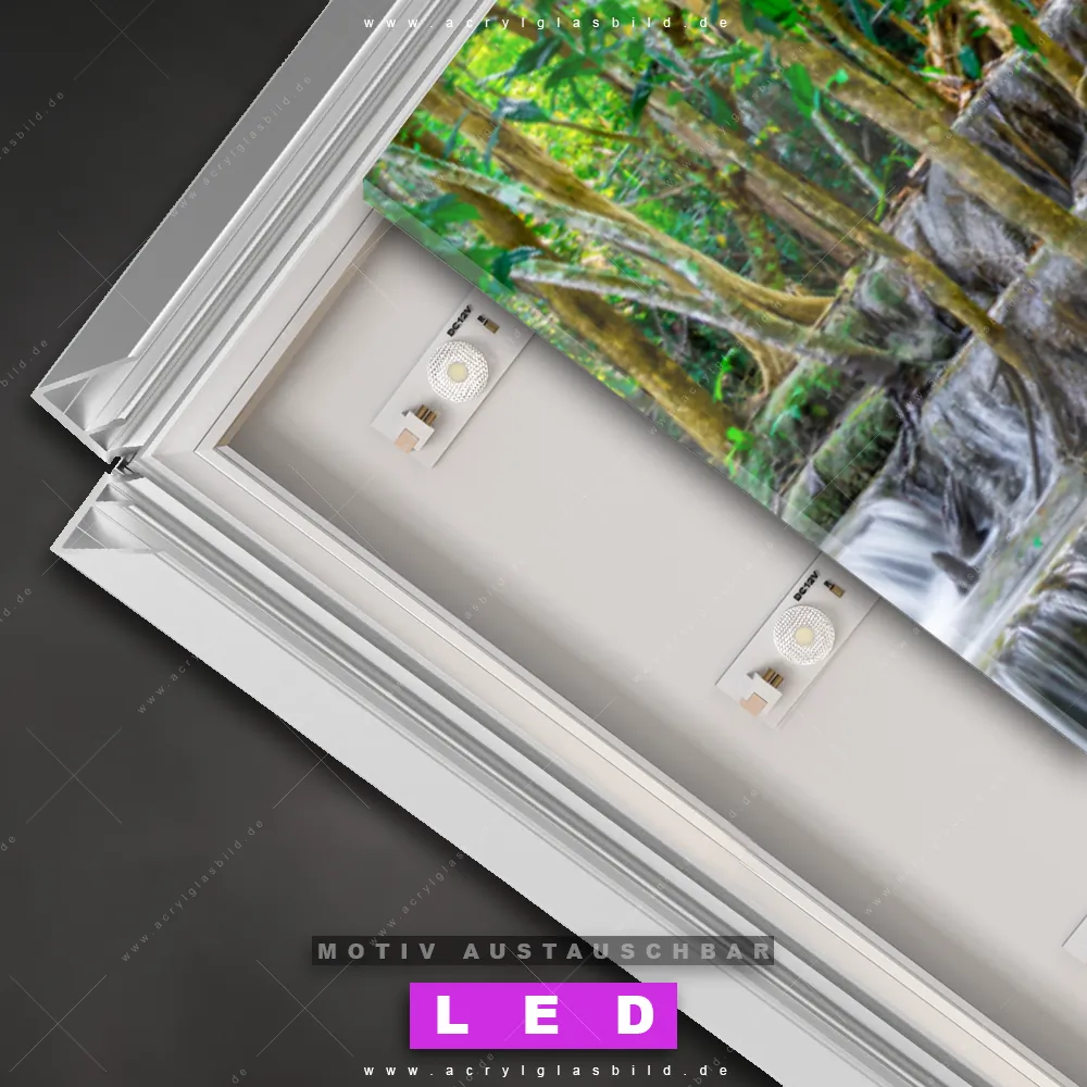 Also, worauf wartest du noch? Verwandle deine Wände mit einem LED Leuchtbild in wahre Kunstwerke und bestelle jetzt das Canvalight® DIA LED Acrylglasbild Kristallklarer Wasserfall in unberührtem Wald. Deine Wände werden strahlen, und deine Freunde werden dank der wechselbaren Motive staunen!