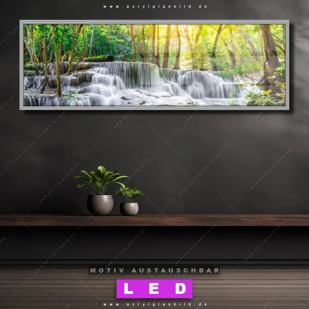 LED Acrylglasbild Canvalight® DIA | Wald & Wasserfall No. 1 | Panorama