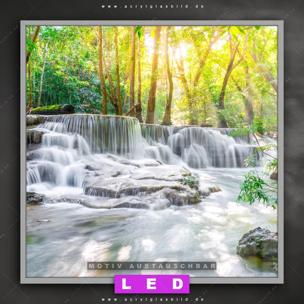 Bist du bereit, deine Wände mit einem dimmbaren LED Bild mit Fernbedienung und optionaler Farbtemperatursteuerung zum Leuchten zu bringen? Wir haben das ultimative Landschaften, Wald - Bäume LED Acrylglasbild Canvalight® DIA für dich! Unser LED Wandbild aus Acrylglas Wald & Wasserfall No. 1 im Quadratischen Format mit austauschbarer bedruckter Acrylglas-Scheibe im DIA-Klapprahmen bringt sofort jede Menge Glanz in deine vier Wände.