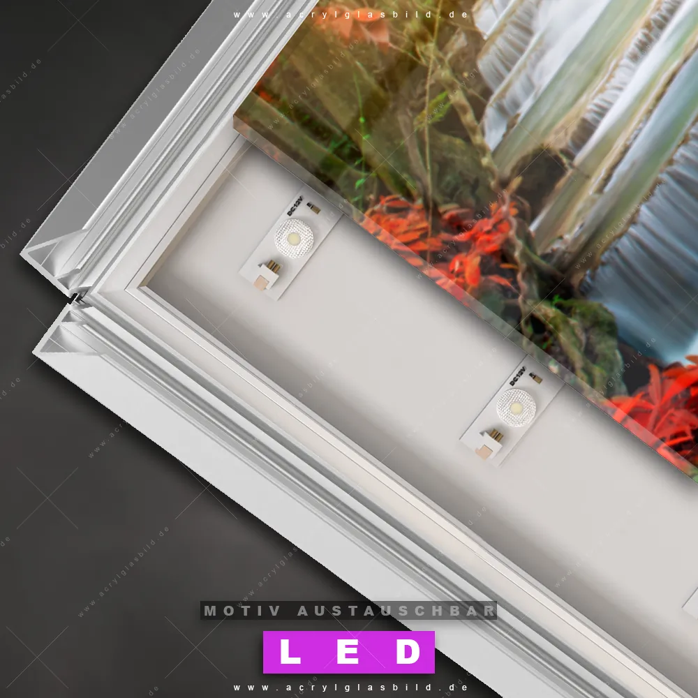 Also, worauf wartest du noch? Verwandle deine Wände mit einem LED Leuchtbild in wahre Kunstwerke und bestelle jetzt das Canvalight® DIA LED Acrylglasbild Wasserfälle im Herbstwald. Deine Wände werden strahlen, und deine Freunde werden dank der wechselbaren Motive staunen!