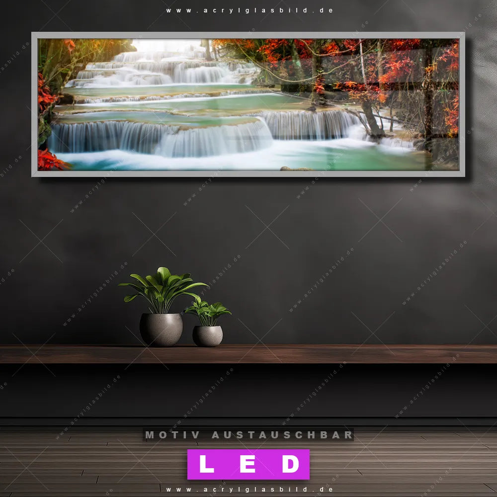LED Acrylglasbild Canvalight® DIA | Wald & Wasserfall No. 5 | Panorama