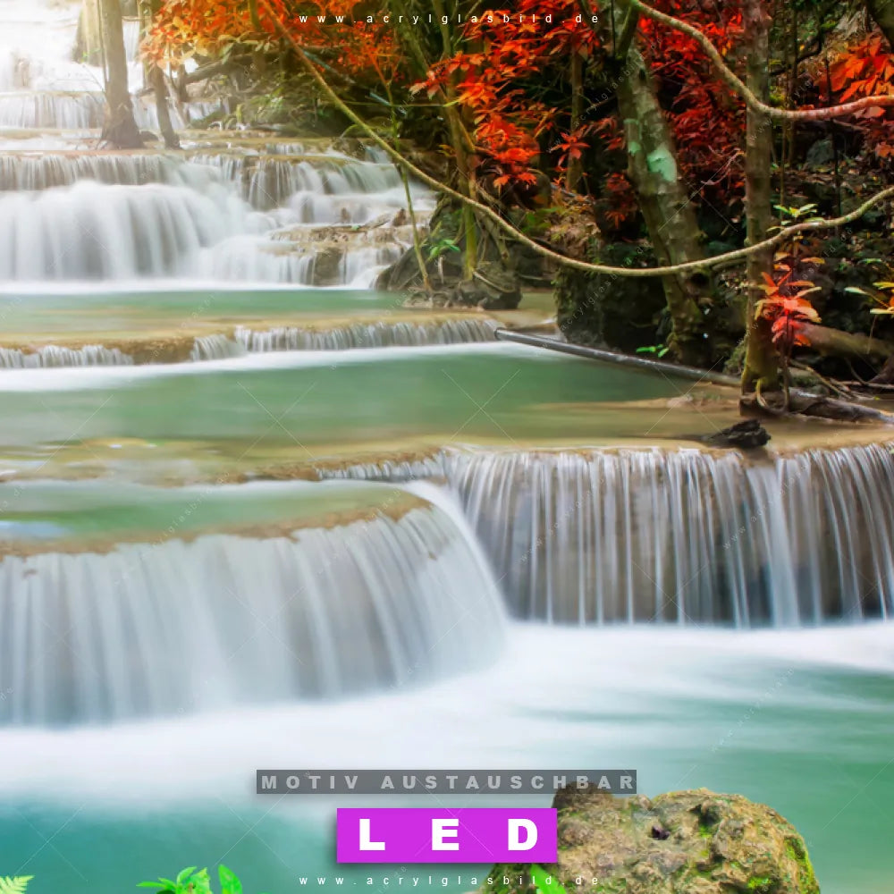 Also, warum noch zögern? Mach deine Wände mit einem Leuchtbild zum absoluten Hingucker und bestelle jetzt das Canvalight® DIA LED Acrylglasbild Wasserfälle im Herbstwald. Deine Wände werden leuchten, und deine Freunde werden dank der wechselbaren Motive beeindruckt sein!