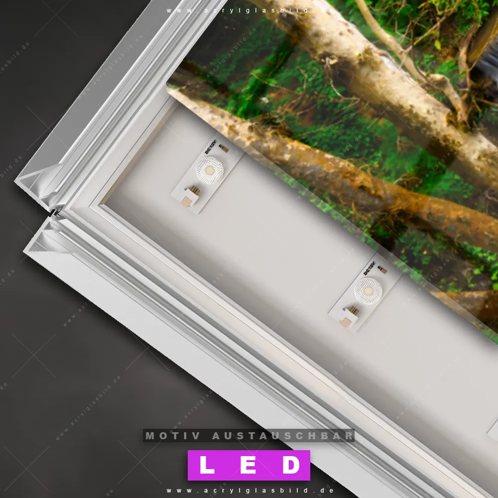 Also, worauf wartest du noch? Verwandle deine Wände mit einem LED Leuchtbild in wahre Kunstwerke und bestelle jetzt das Canvalight® DIA LED Acrylglasbild Sommerwald mit Wasserfällen. Deine Wände werden strahlen, und deine Freunde werden dank der wechselbaren Motive staunen!