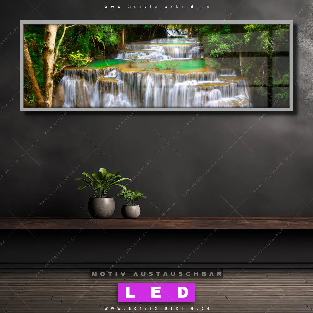LED Acrylglasbild Canvalight® DIA | Wald & Wasserfall No. 6 | Panorama